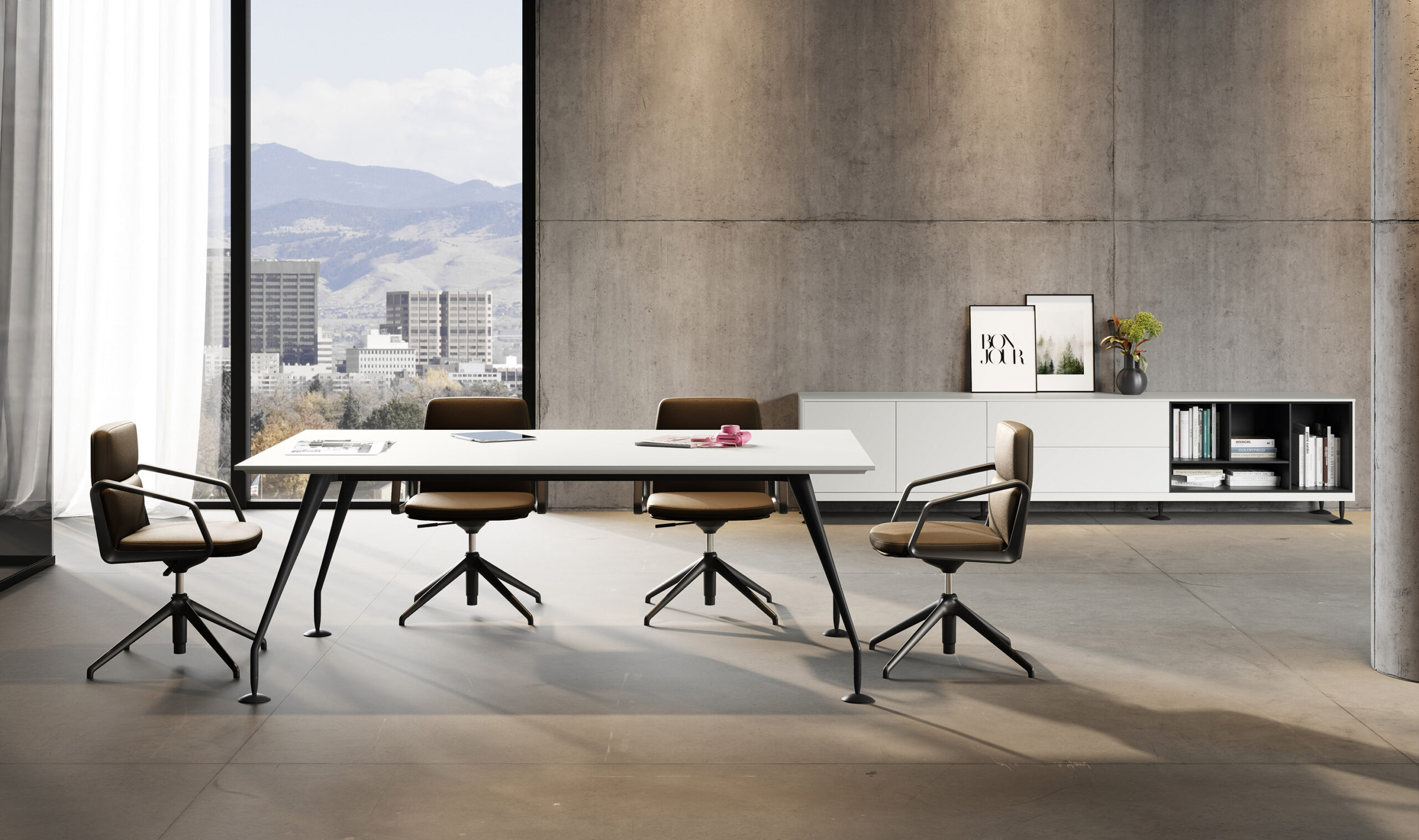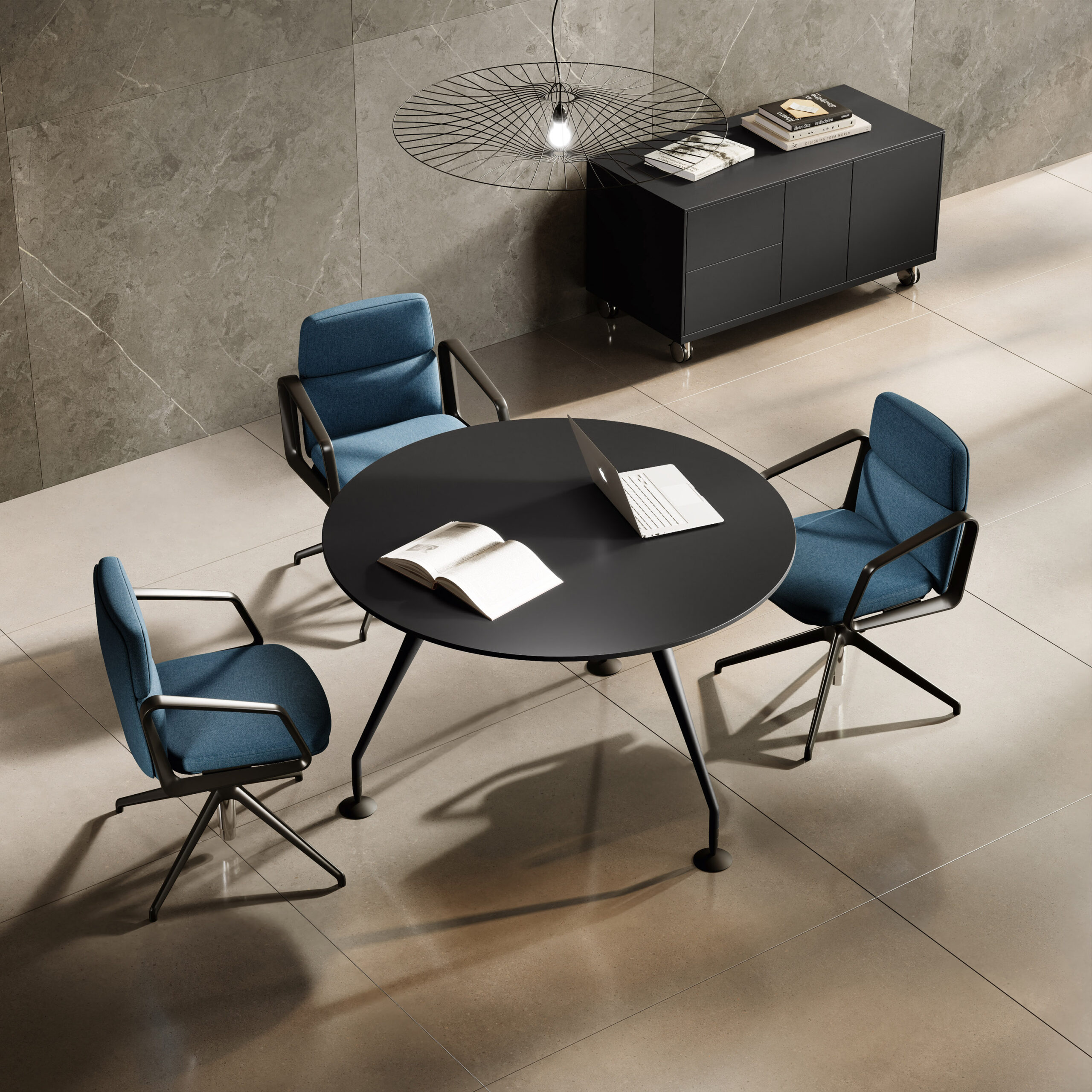 - Cone-shaped tubular legs in painted and/or polished chrome-plated steel