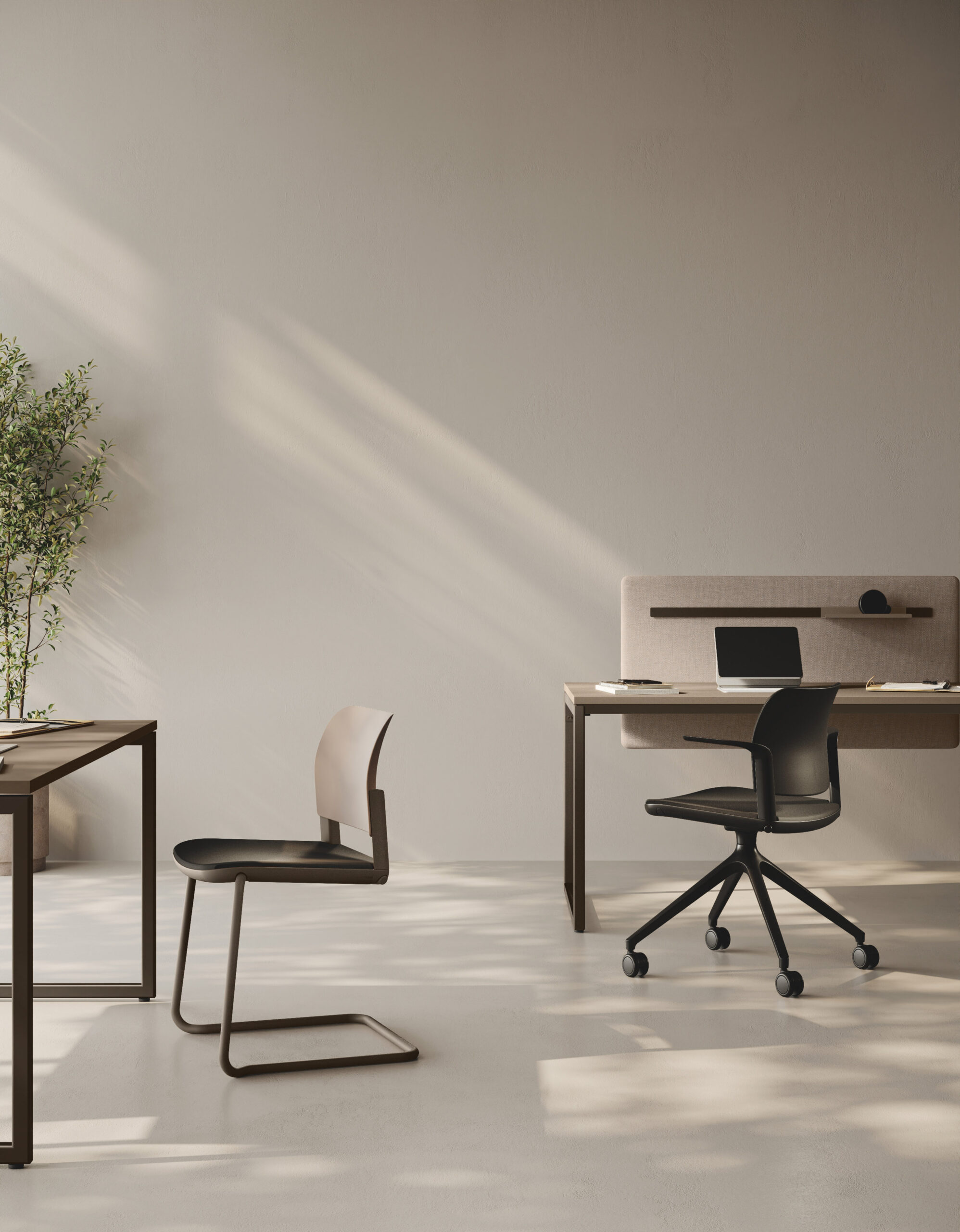 F06 is a fluid and versatile chair, designed to adapt to operational, collaborative, or waiting areas. Stackable, lightweight, and featuring a two-tone shell, it stands out for its essential design and ease of everyday use. Ideal for dynamic environments, always ready to take on a new role.