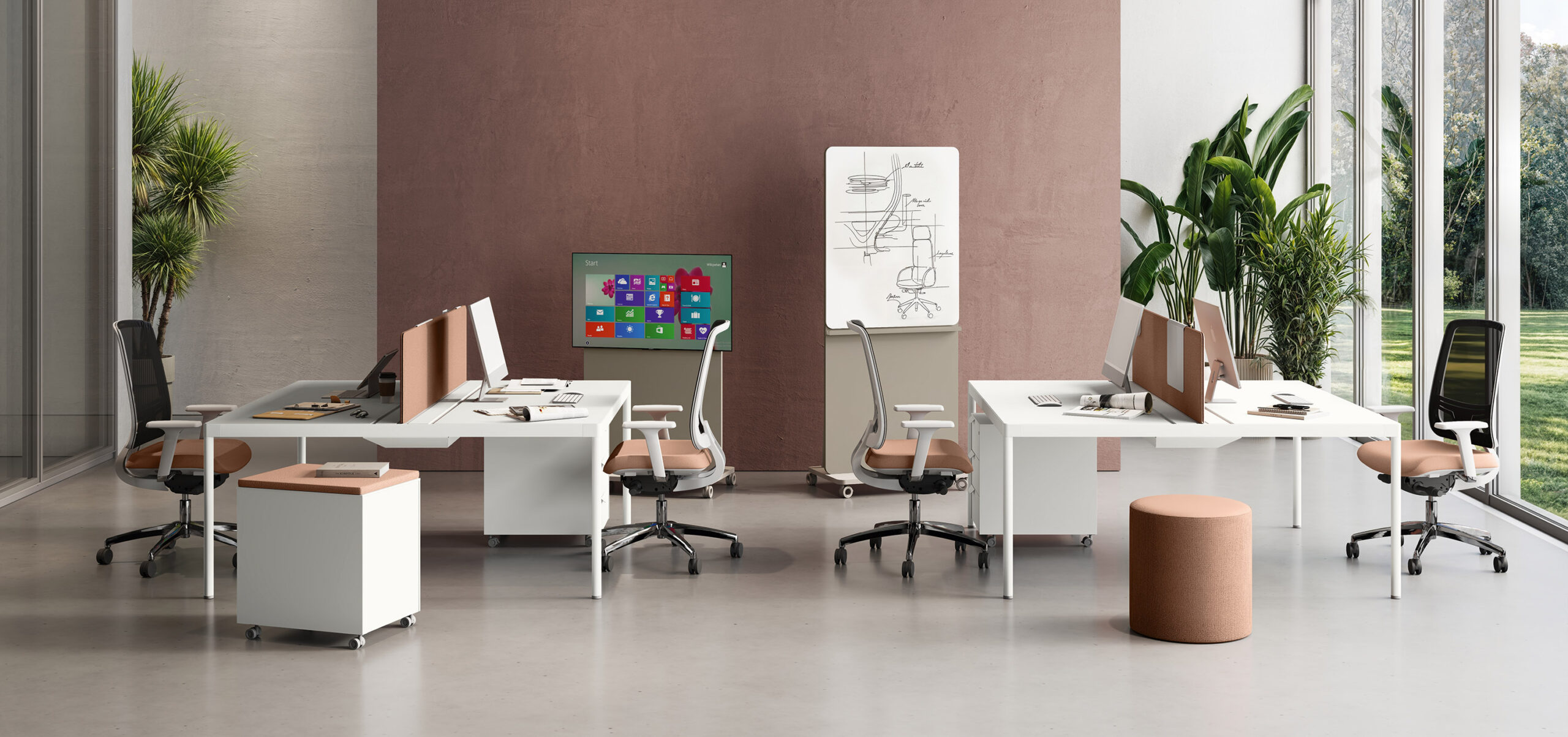 Versatile desks for executive and operational offices and meeting rooms.