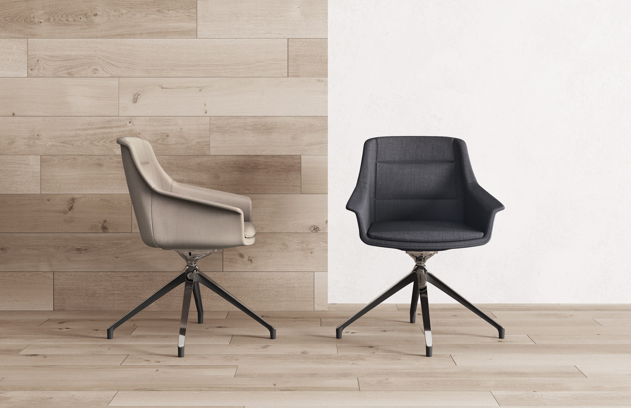 Jera® is a modern executive chair, comfortable and enveloping, proposed in two heights and three versions. Its shapes, clear and neatly outlined, are enhanced by smooth upholstery or sewn bands.