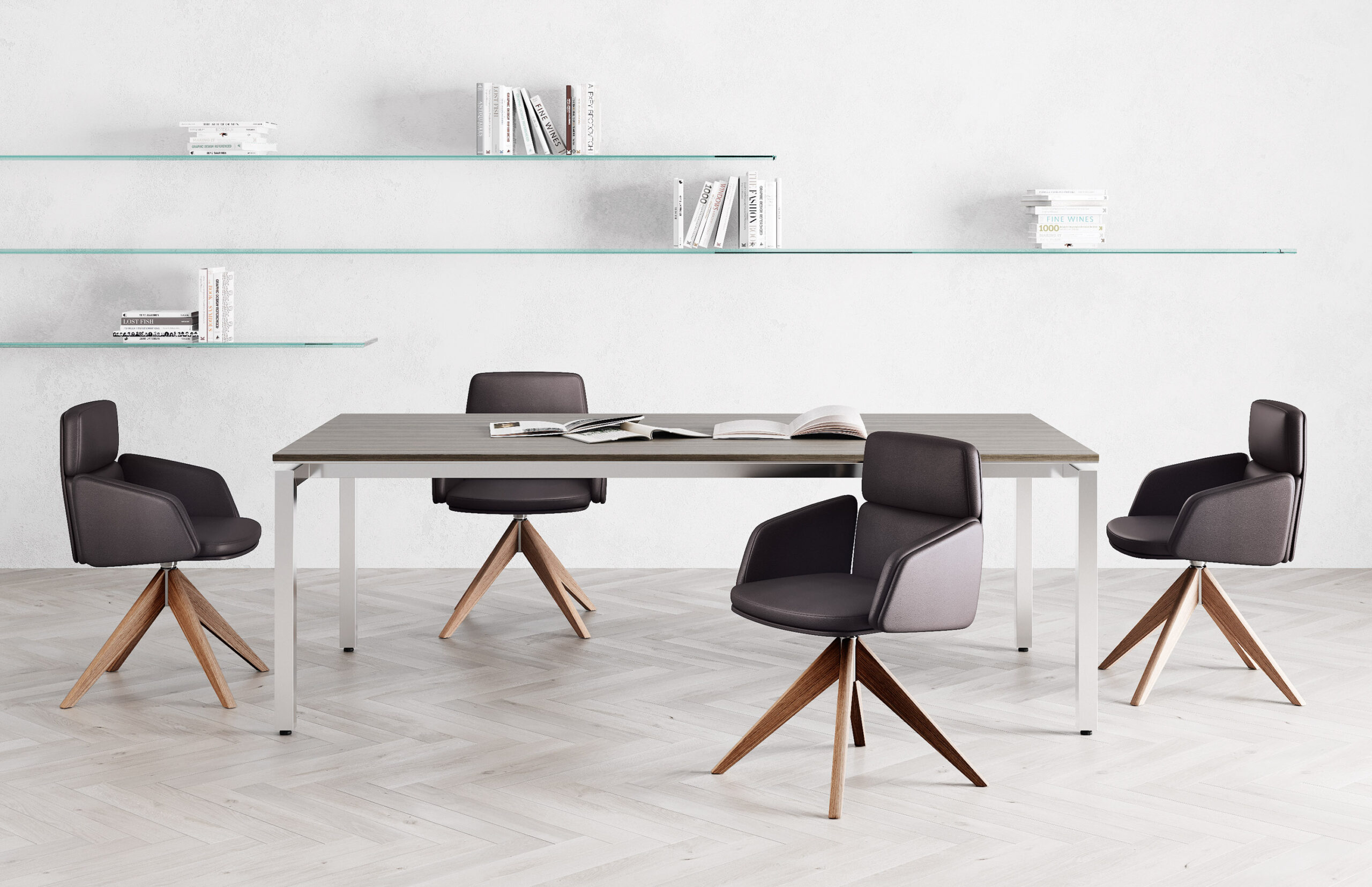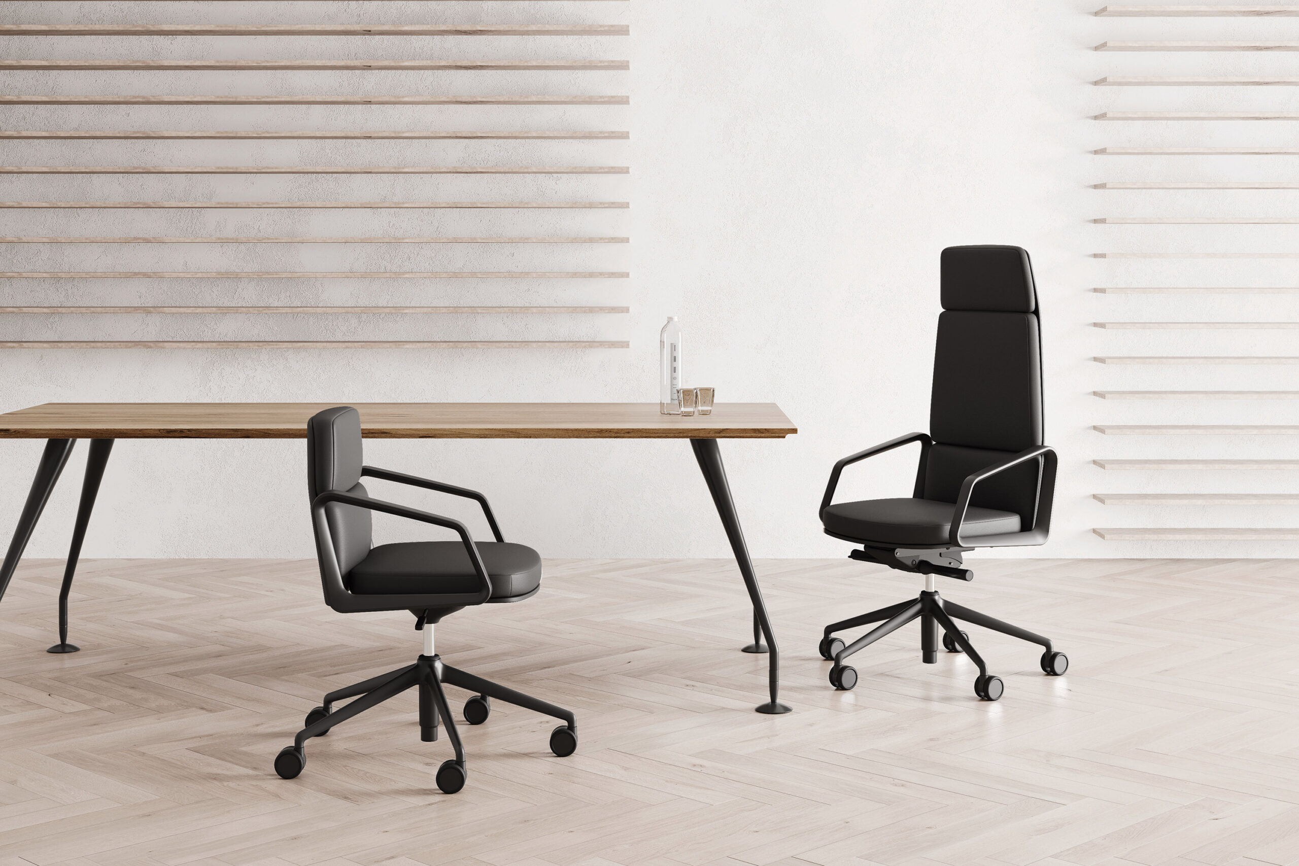 A true icon, a symbol of leadership and authority to furnish offices and meeting rooms.Quality in every detail. Great attention is paid to design, in each and every component, including the base frames that are available in die-cast aluminium or wood, fixed or on wheels.