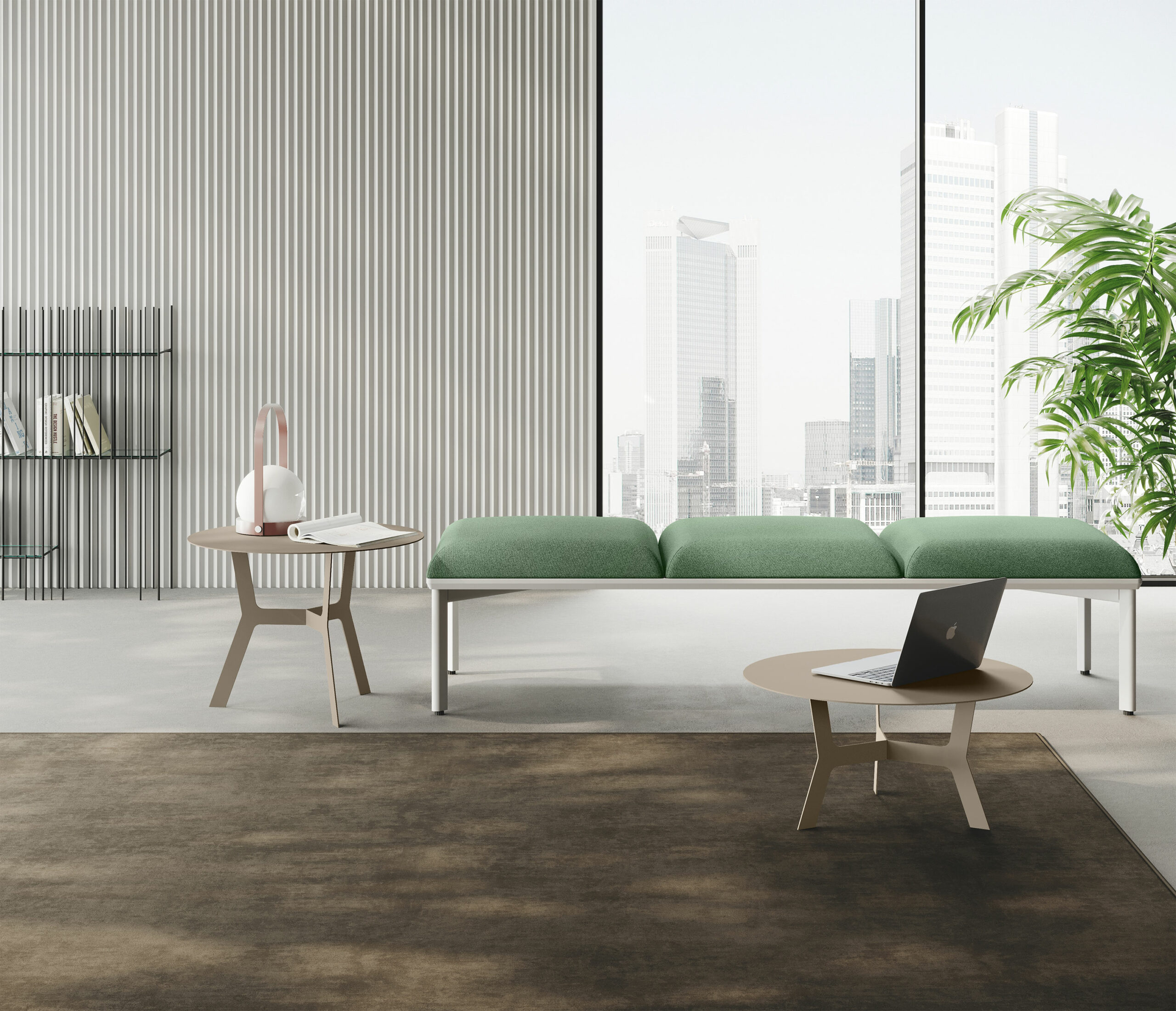 A slender, contoured sheet metal structure in ten catalogue colours. The stylistic abstraction of familiar stylistic features leads to the creation of small service tables with new proportions.