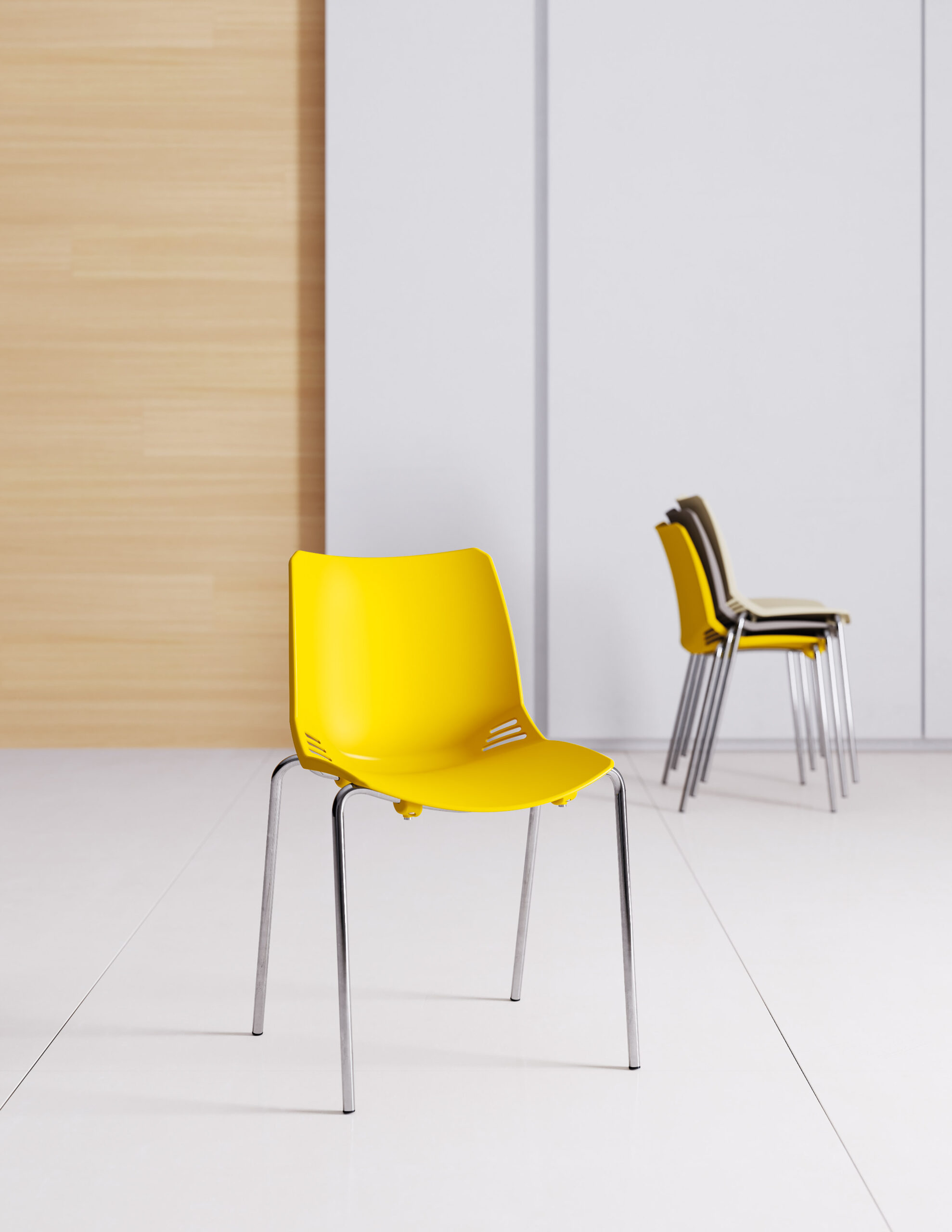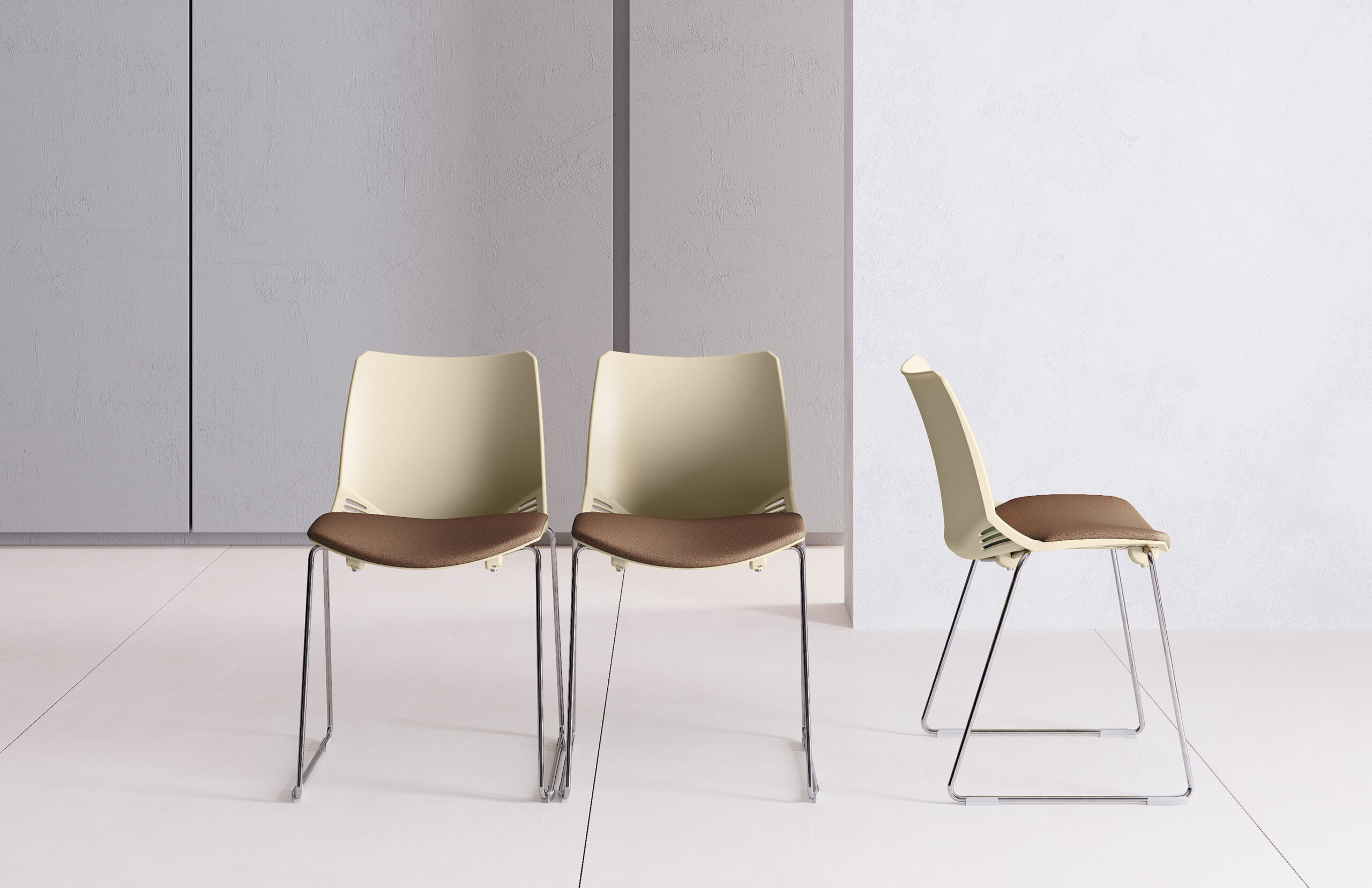 Un monocoque ouvert à tous les usages et à tous les environnements. Disponible dans les versions chaise et tabouret avec structures, à quatre pieds ou à fleur, qui reçoivent des éléments en polypropylène dans trois couleurs. Le coussin rembourré améliore l’image et la fonctionnalité.