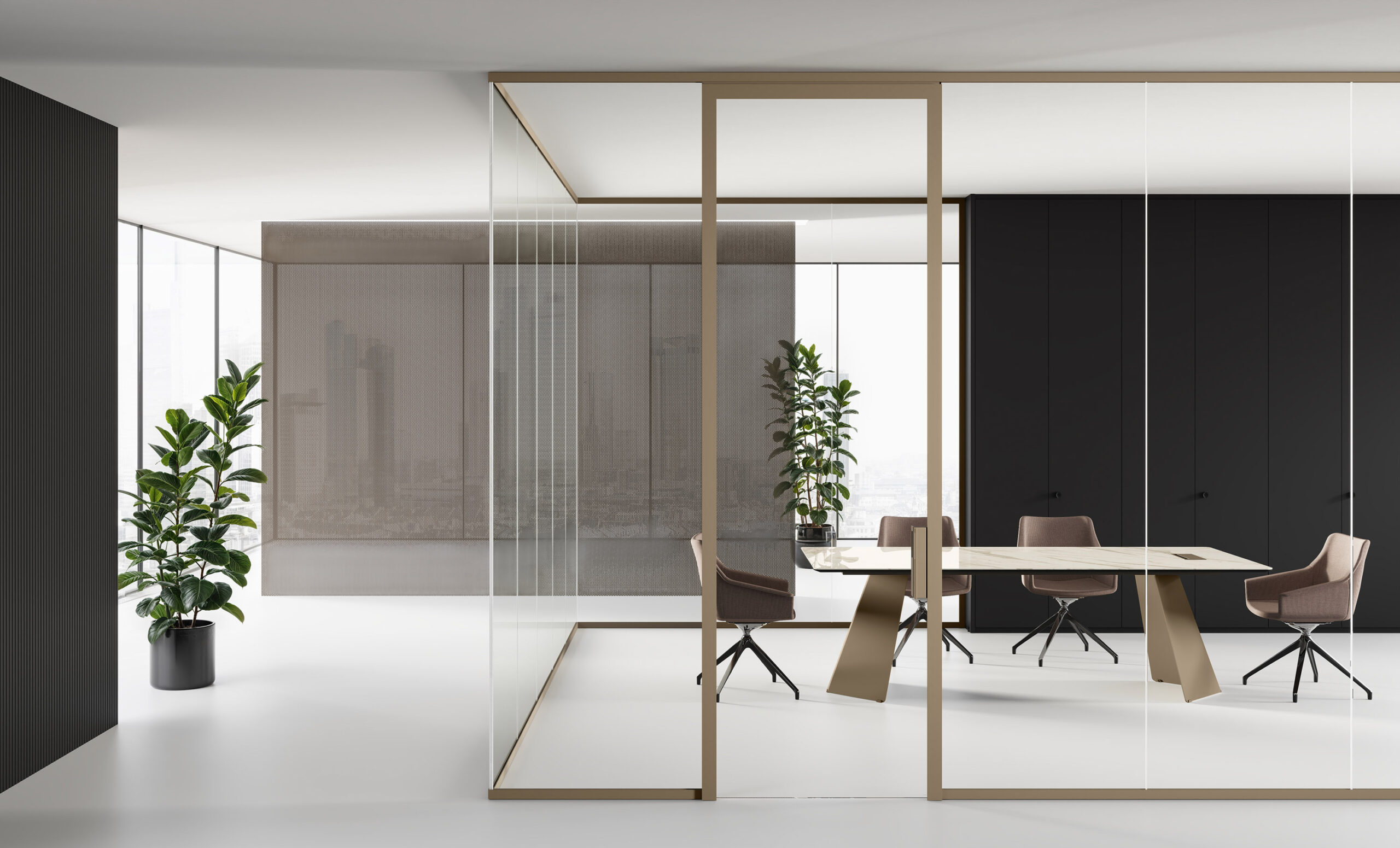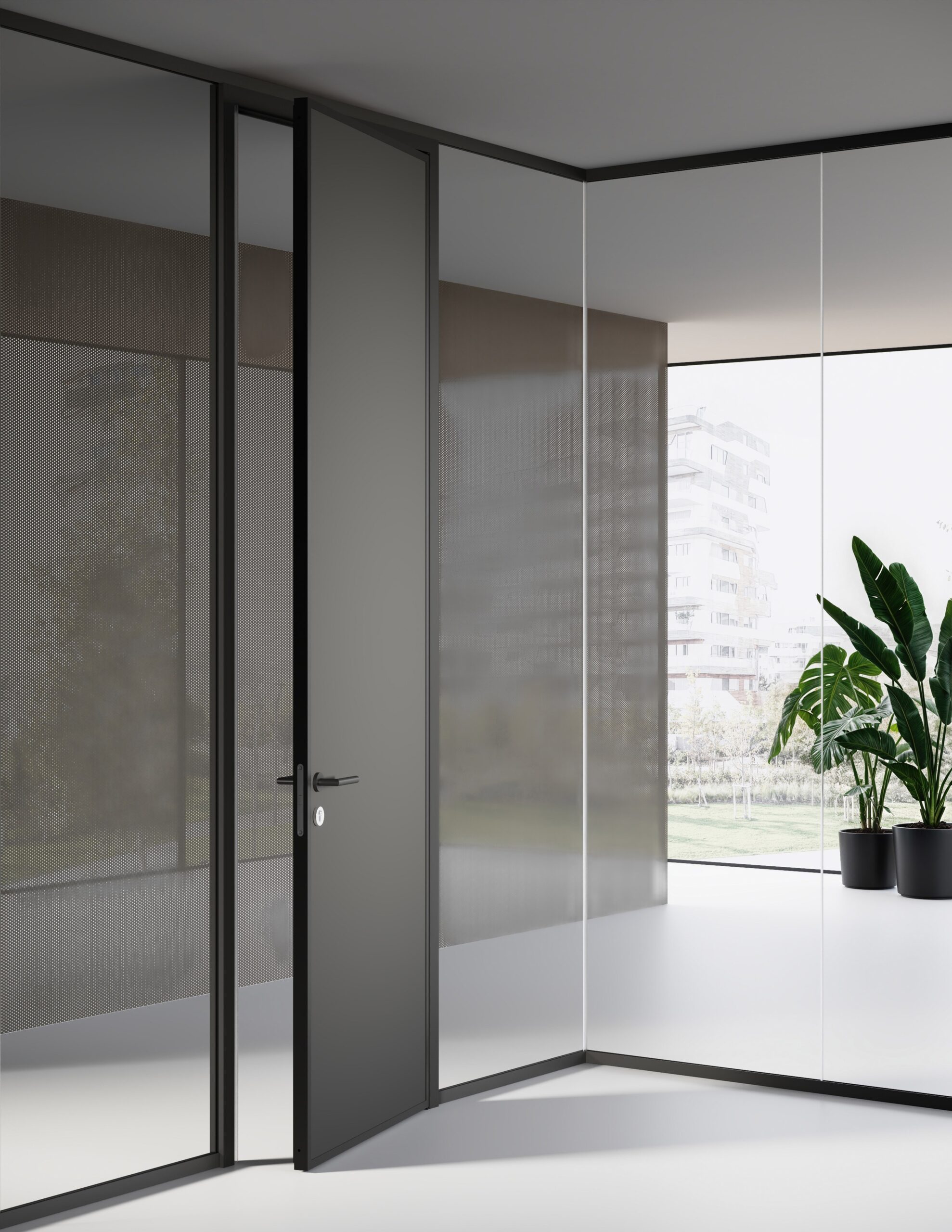 Un système de cloisons de séparation en verre autoportant dont chaque élément présente un minimum d’encombrement visuel pour un maximum de résistance mécanique. Un projet inspiré par des critères d’écocompatibilité prévoyant l’utilisation de matériaux parfaitement recyclables et exploitant les techniques de production à durabilité environnementale.