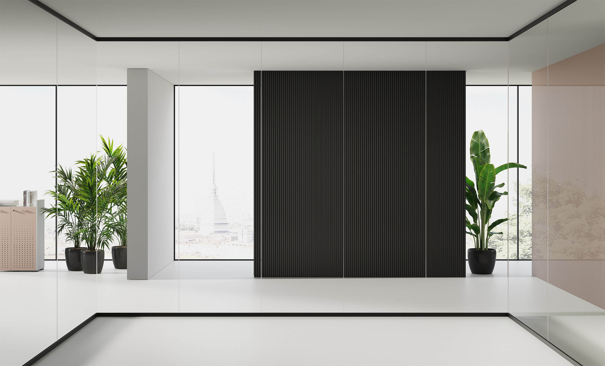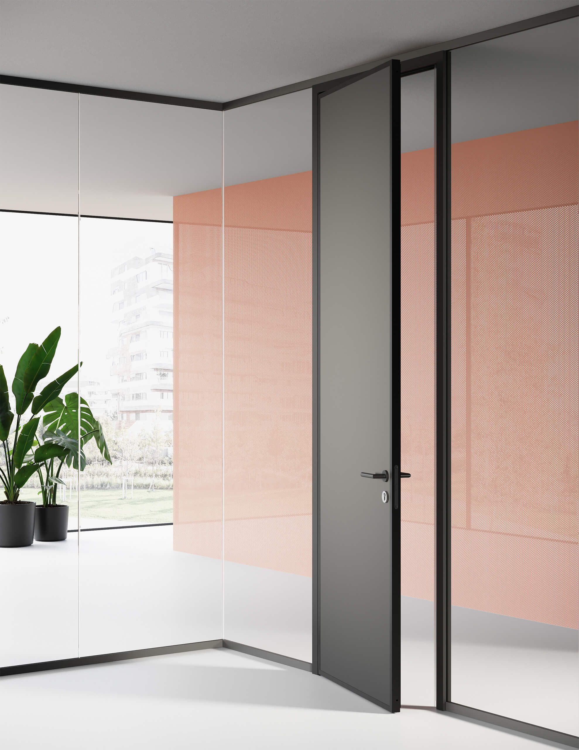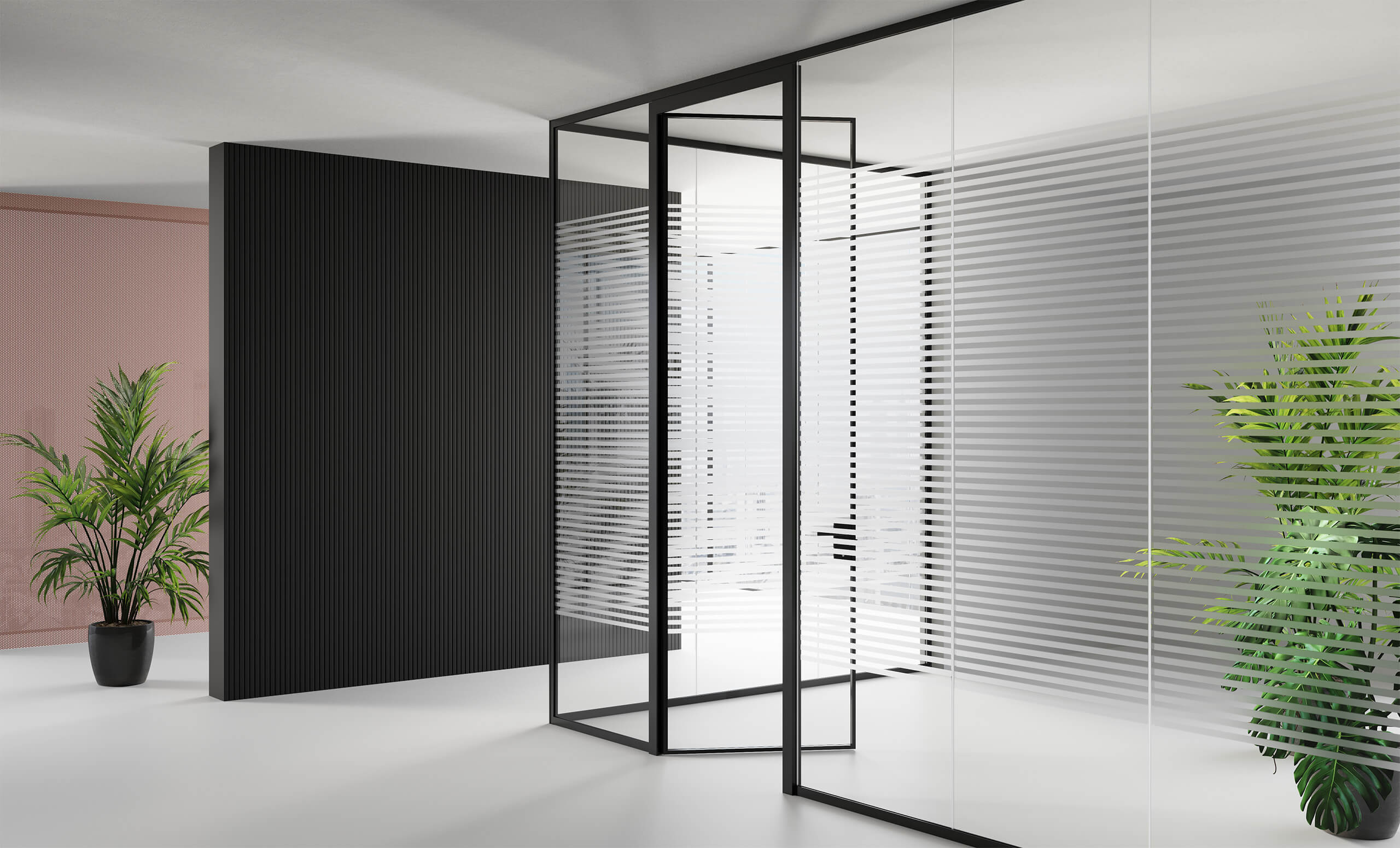 Un système de cloisons de séparation en verre autoportant dont chaque élément présente un minimum d’encombrement visuel pour un maximum de résistance mécanique. Un projet inspiré par des critères d’écocompatibilité prévoyant l’utilisation de matériaux parfaitement recyclables et exploitant les techniques de production à durabilité environnementale.