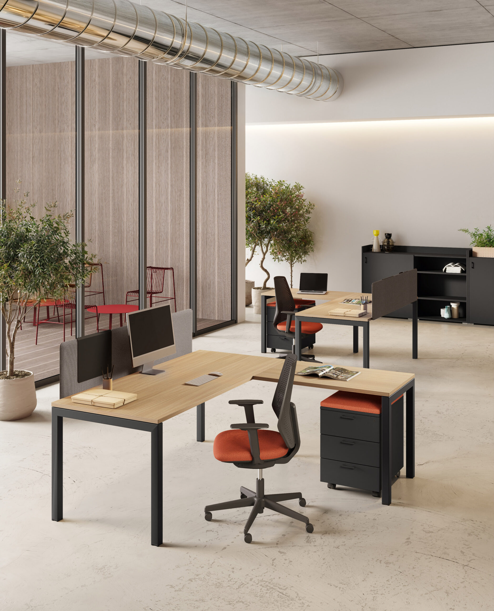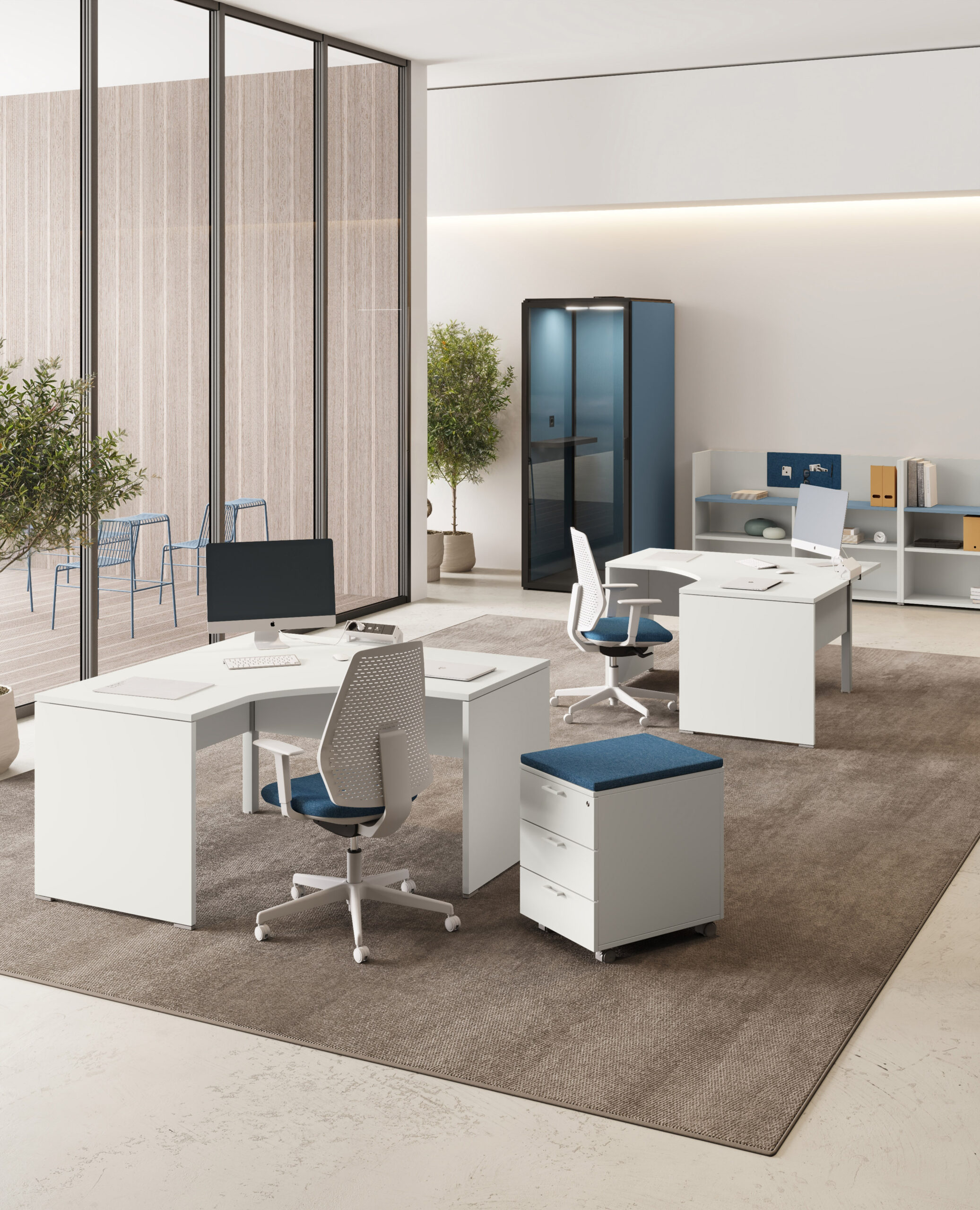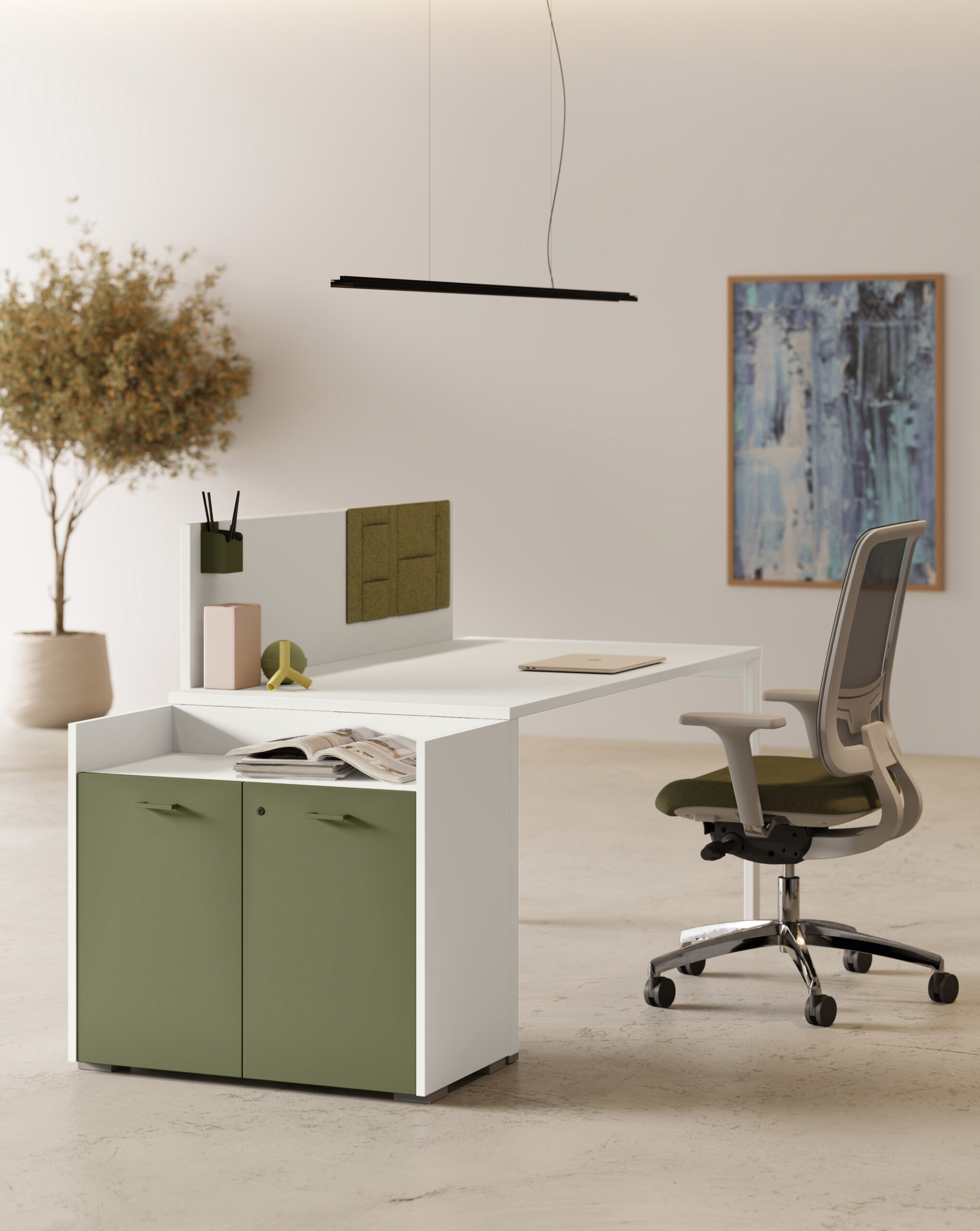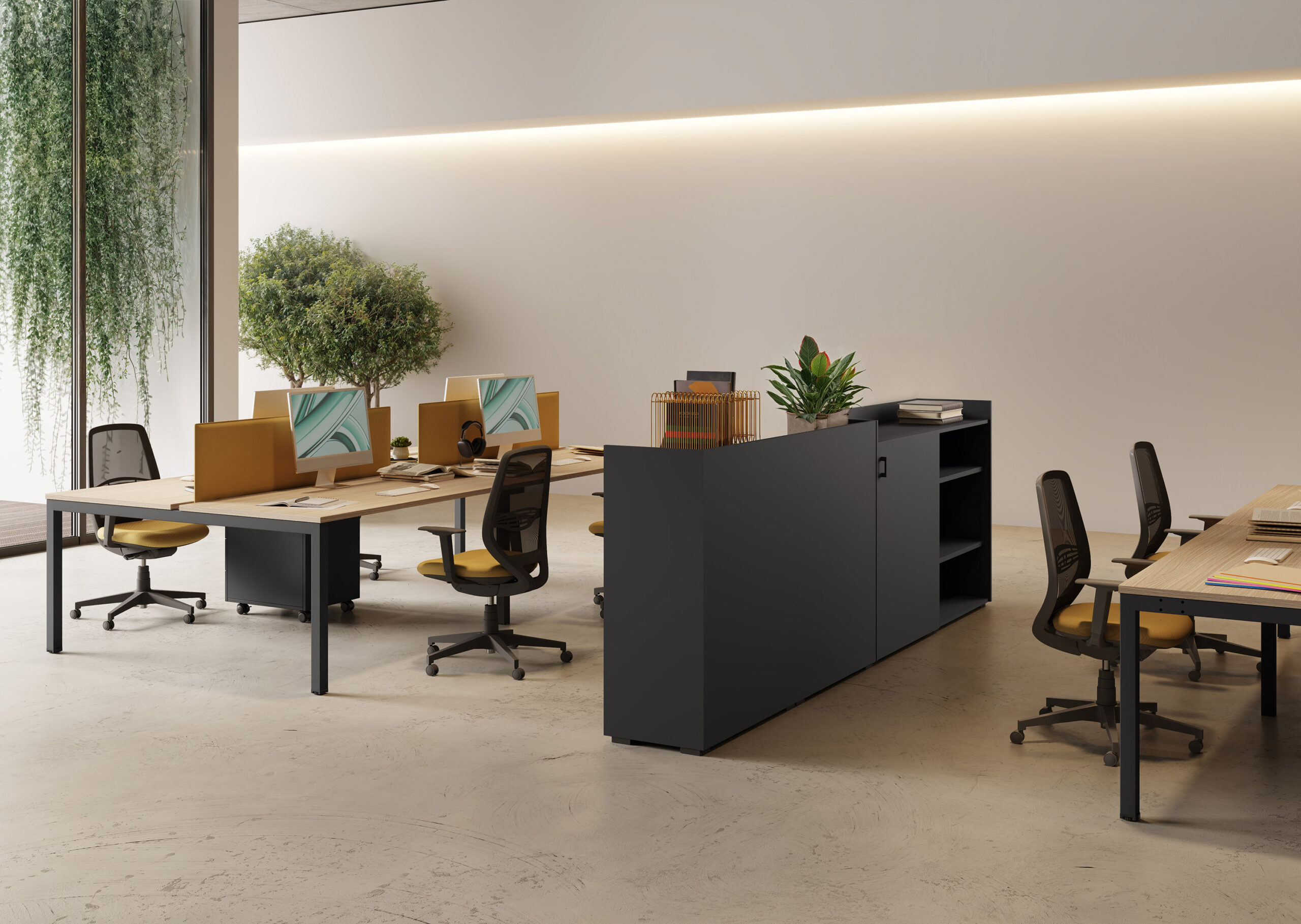 - Rangements Comby en 2 hauteurs, autonomes et intégrés avec le bureau.