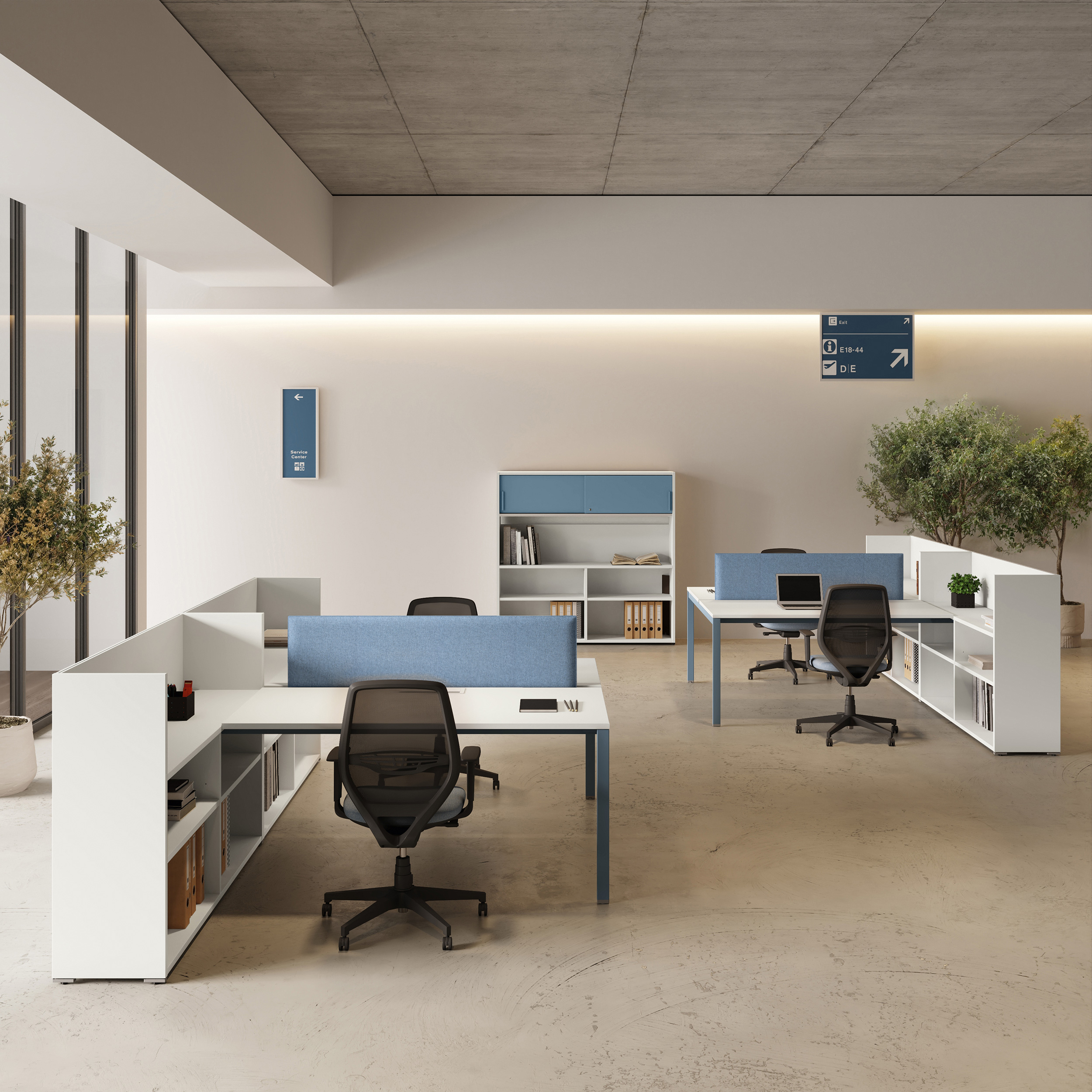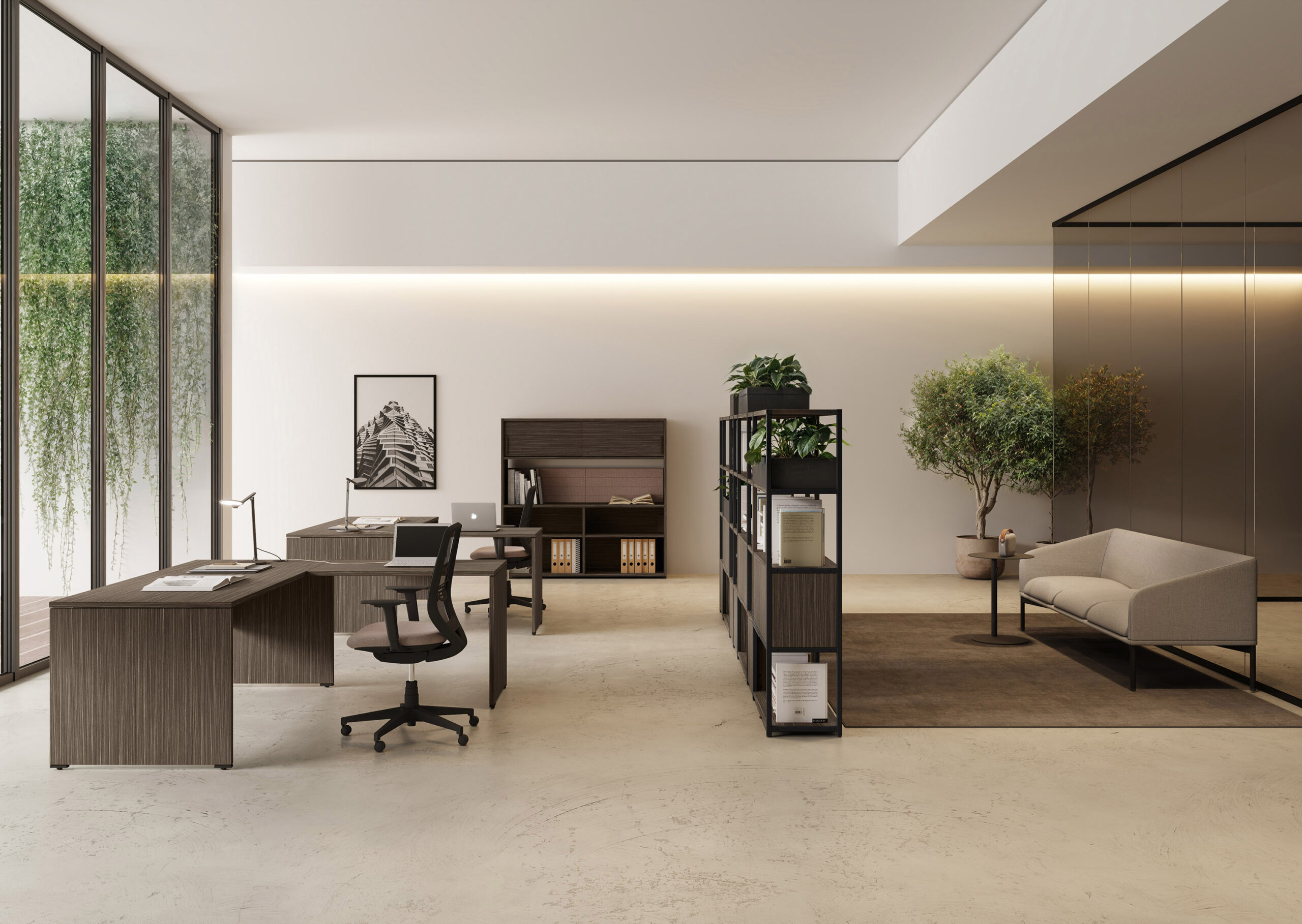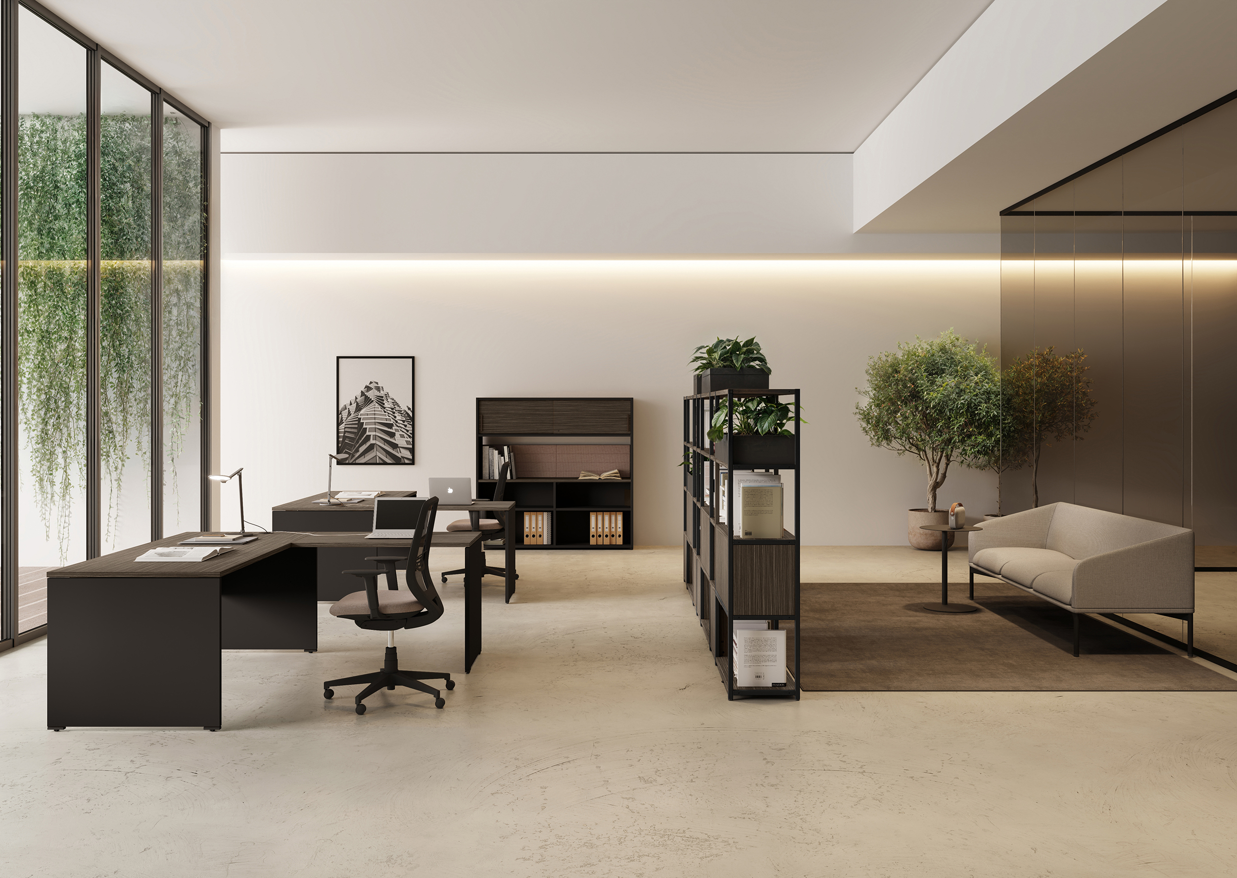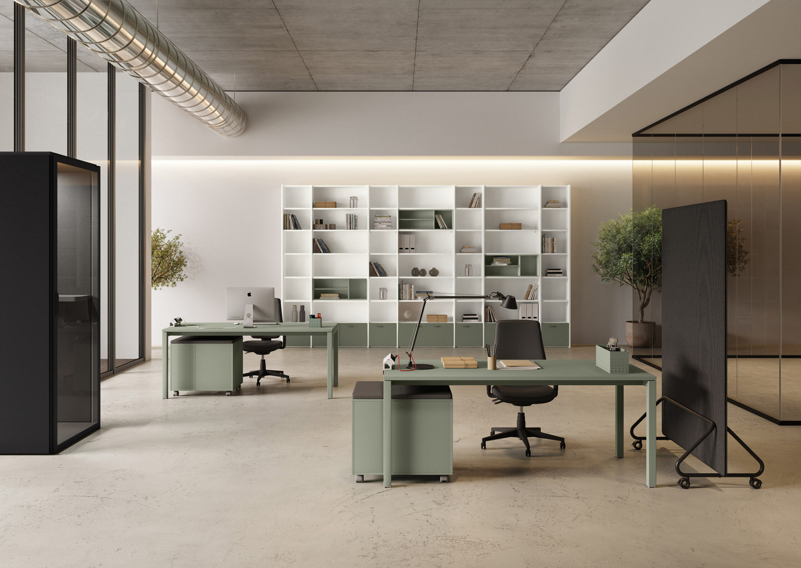 - Rangements Comby en 2 hauteurs, autonomes et intégrés avec le bureau.