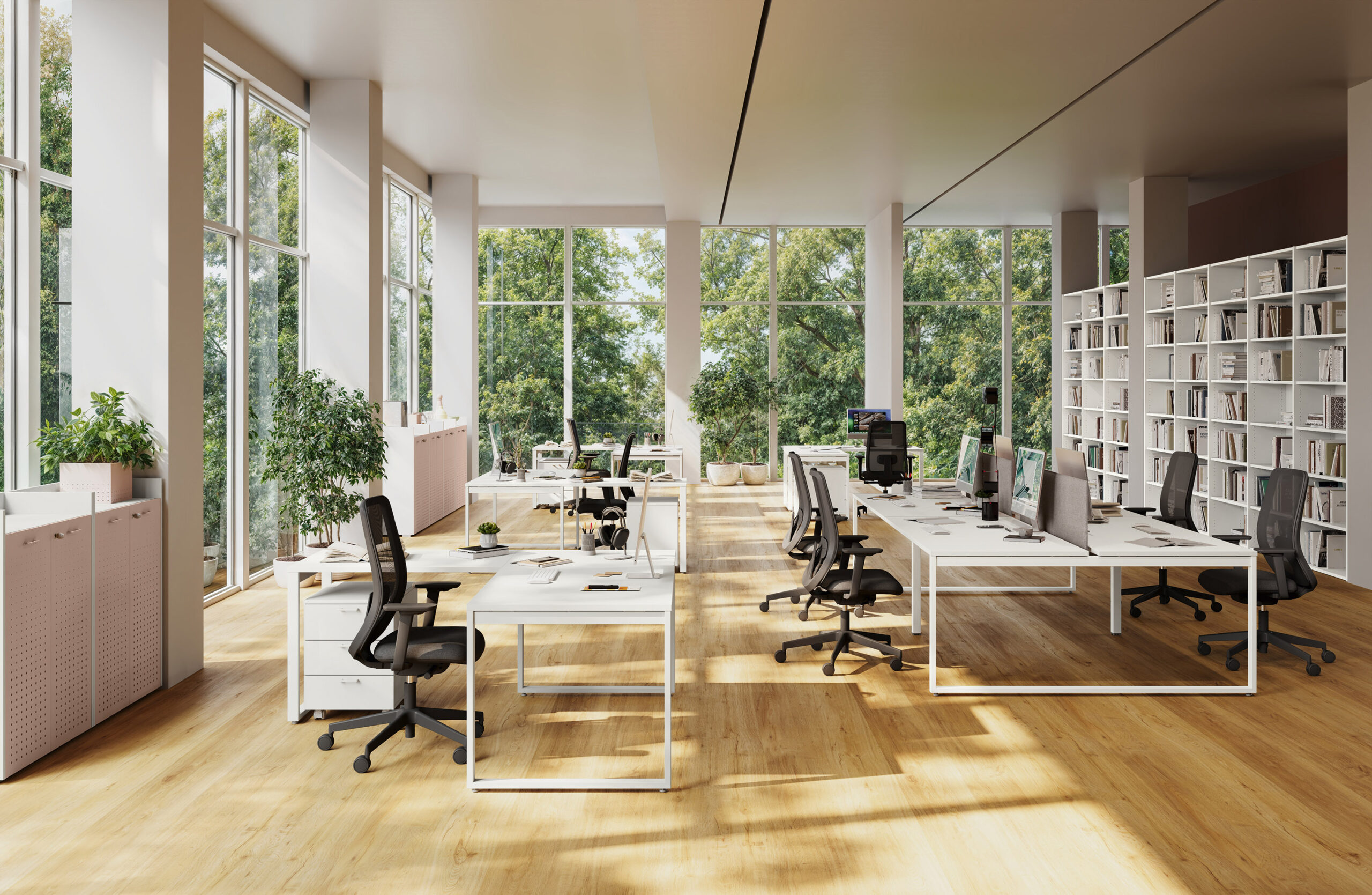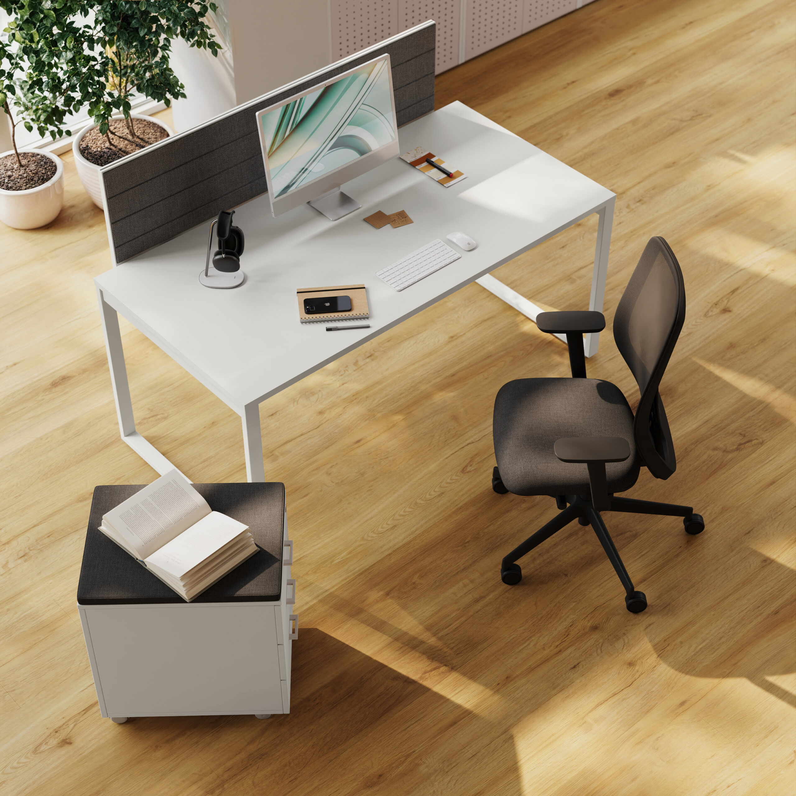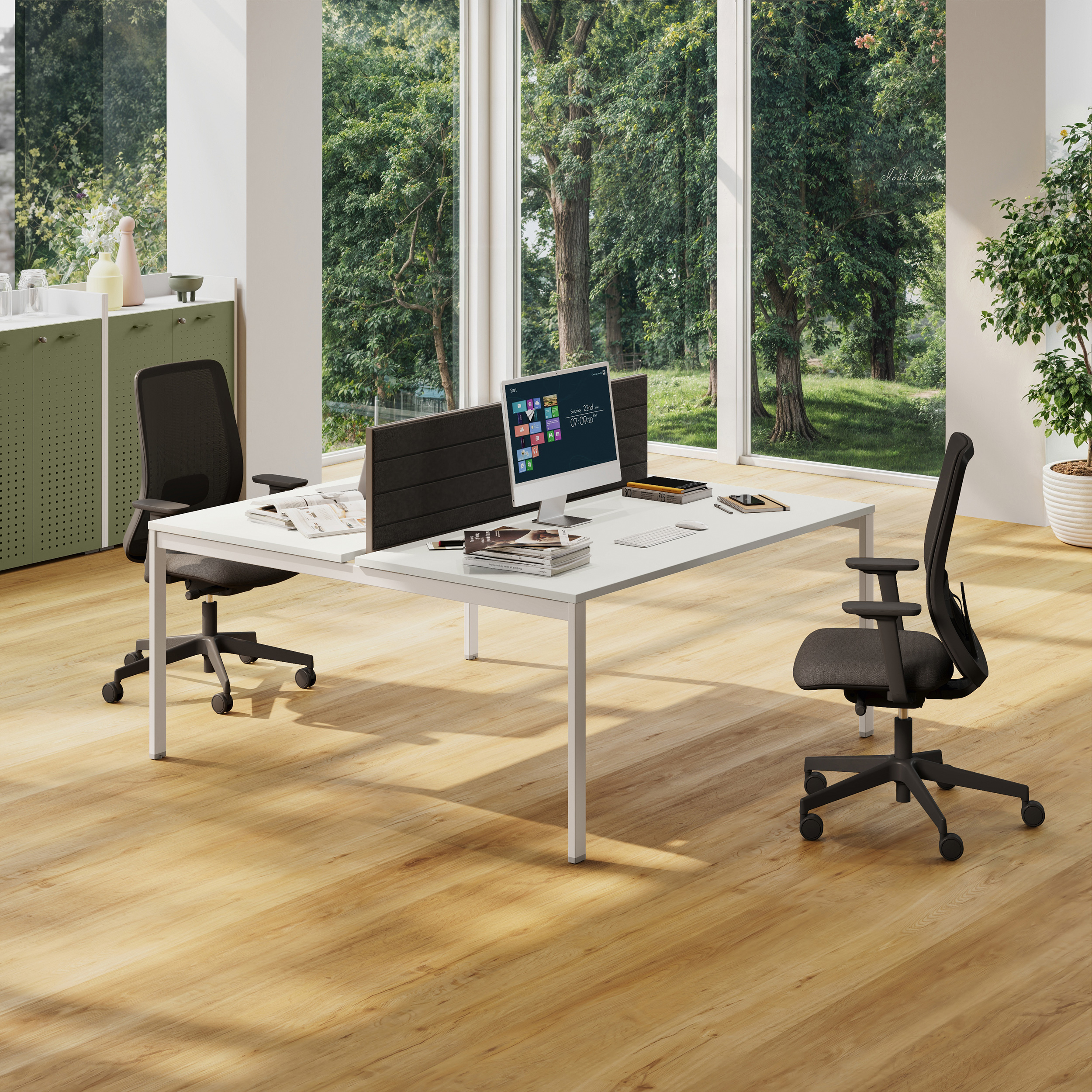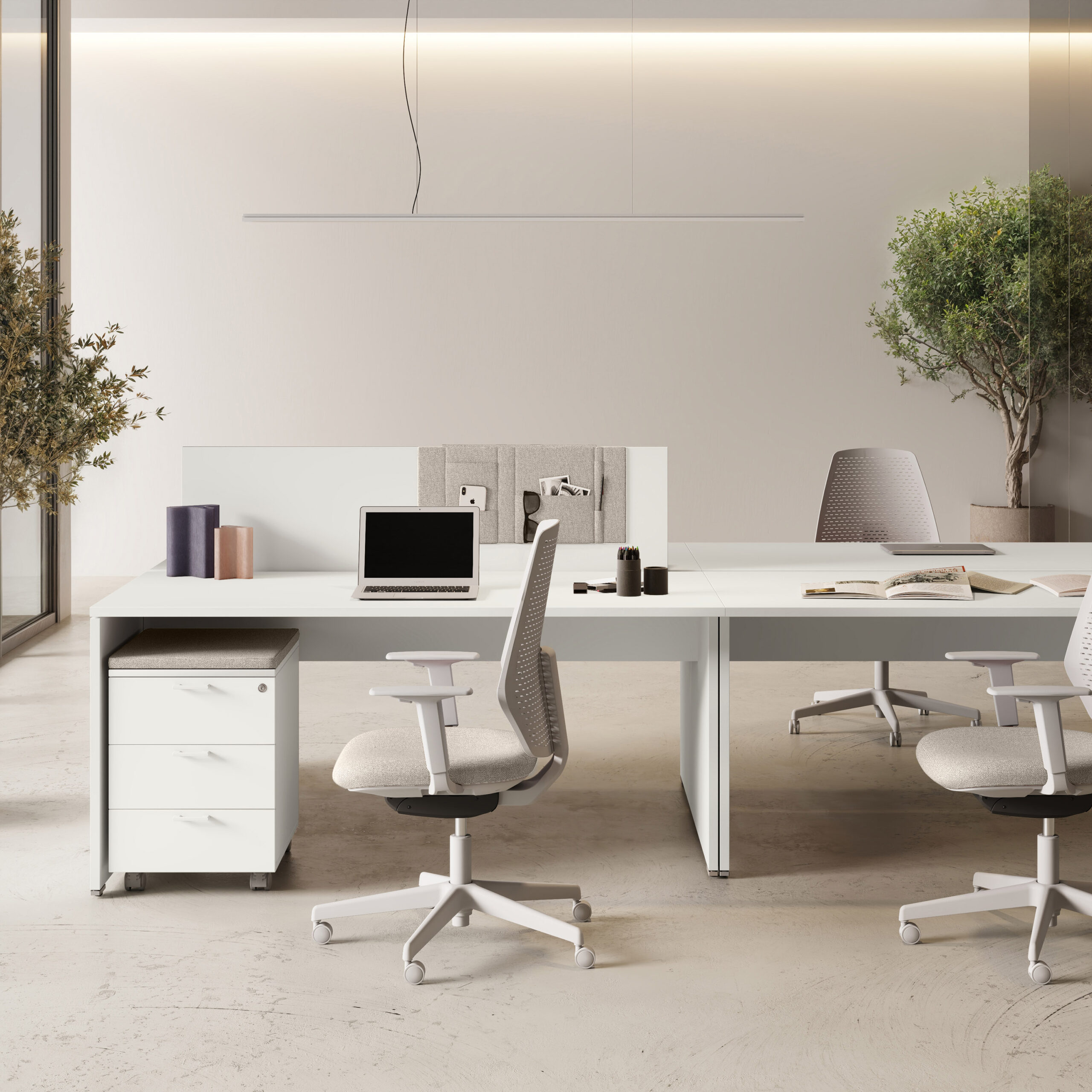 - Rangements Comby en 2 hauteurs, autonomes et intégrés avec le bureau.