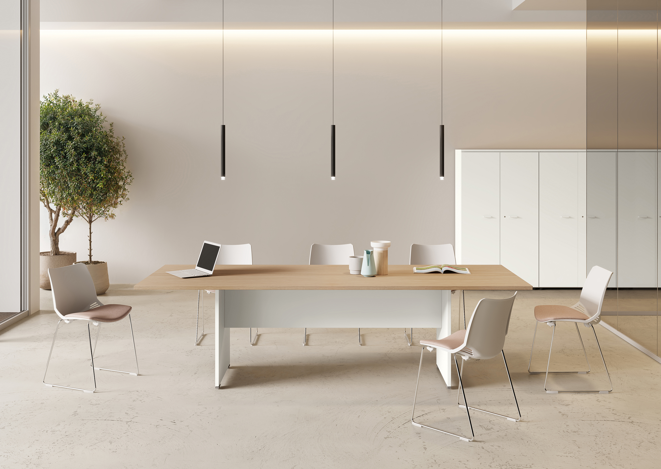 Oxi se caractérise pour la jambe à pont, sobre et toujours actuelle. Avec ses solutions géométriques et techniques, il satisfait toutes les exigences fonctionnelles et de configuration, s’intégrant parfaitement dans n’importe quel environnement grâce aux nombreuses finitions et accessoires.