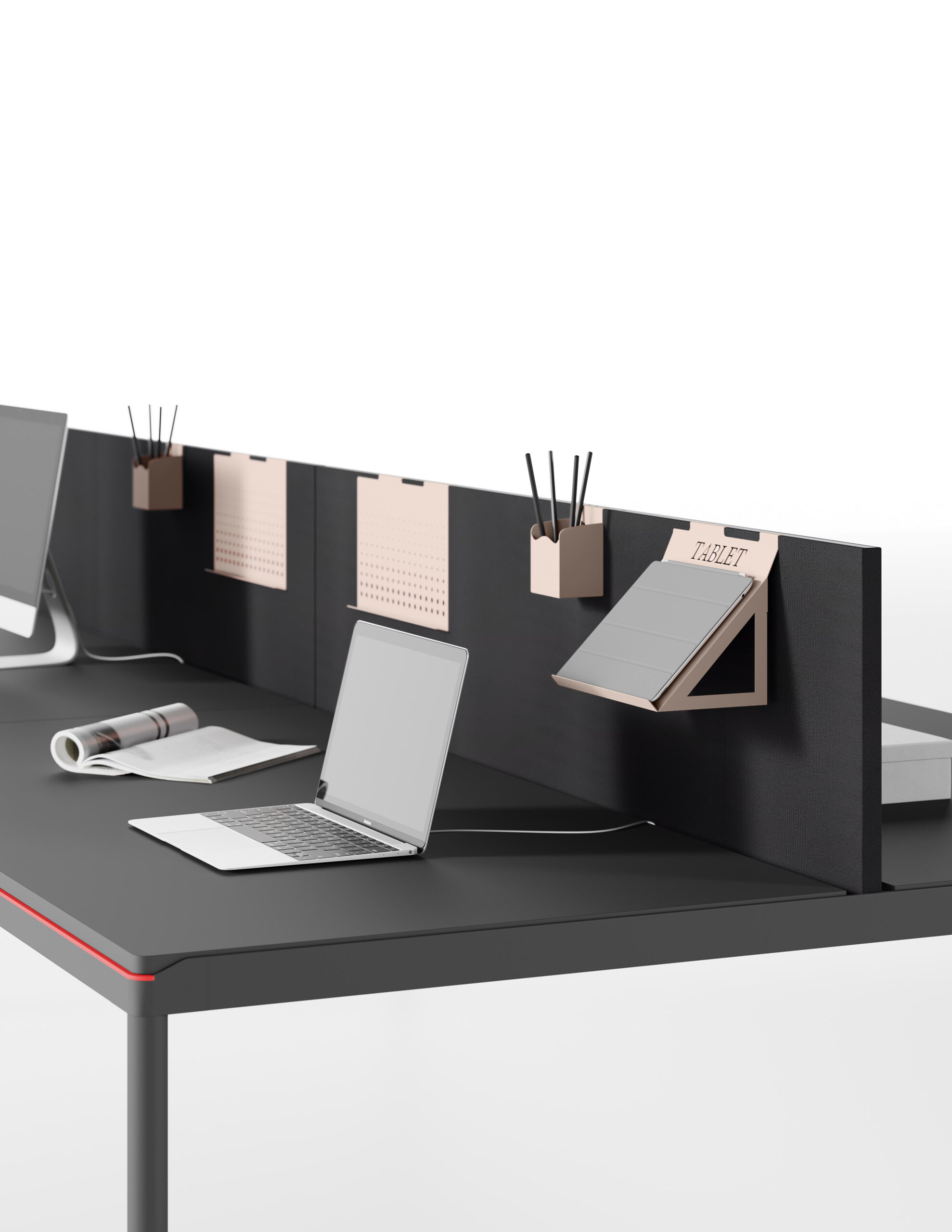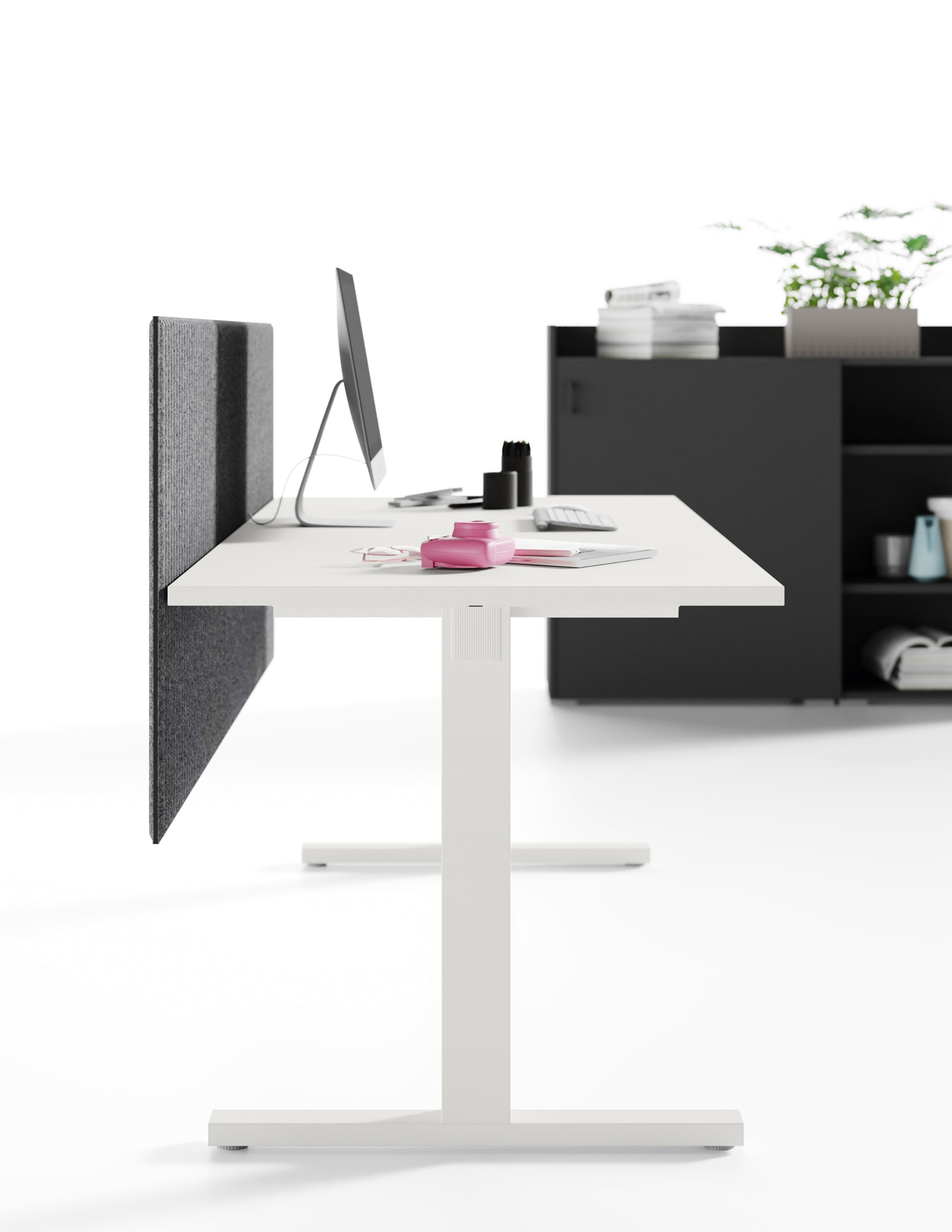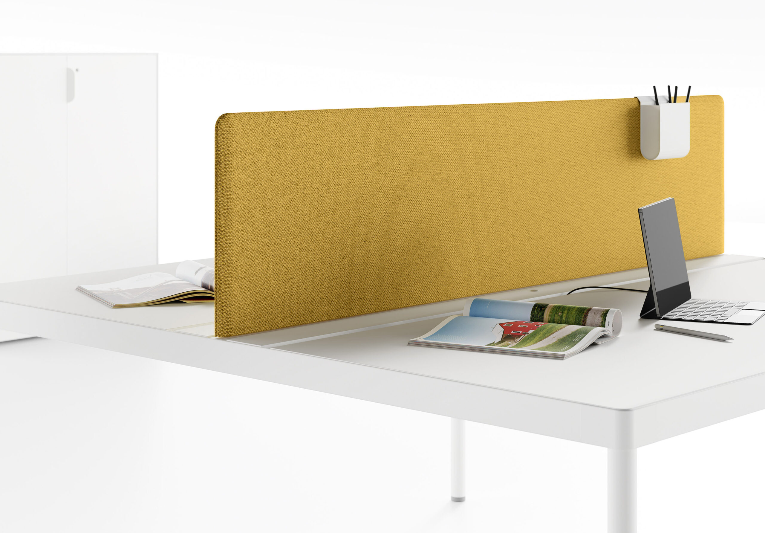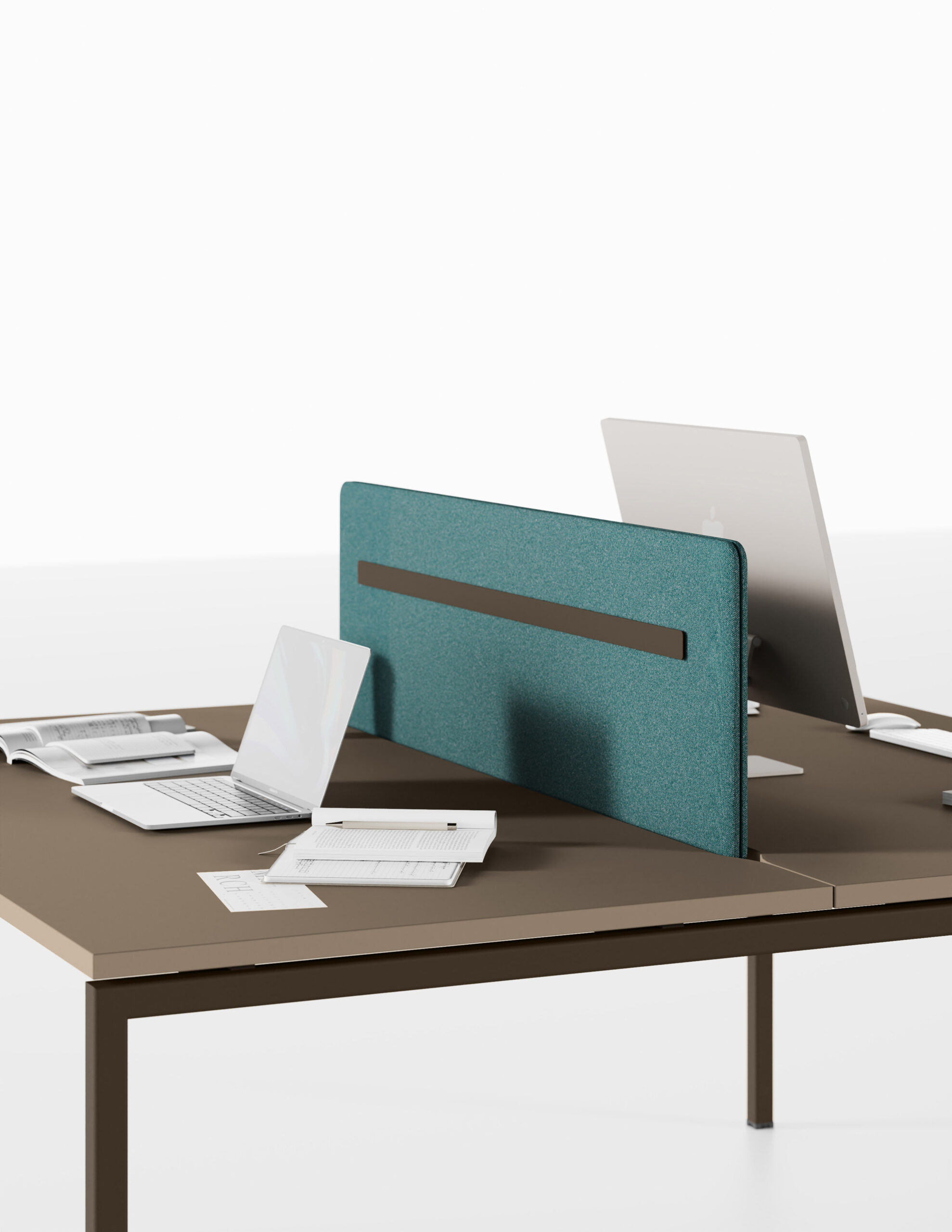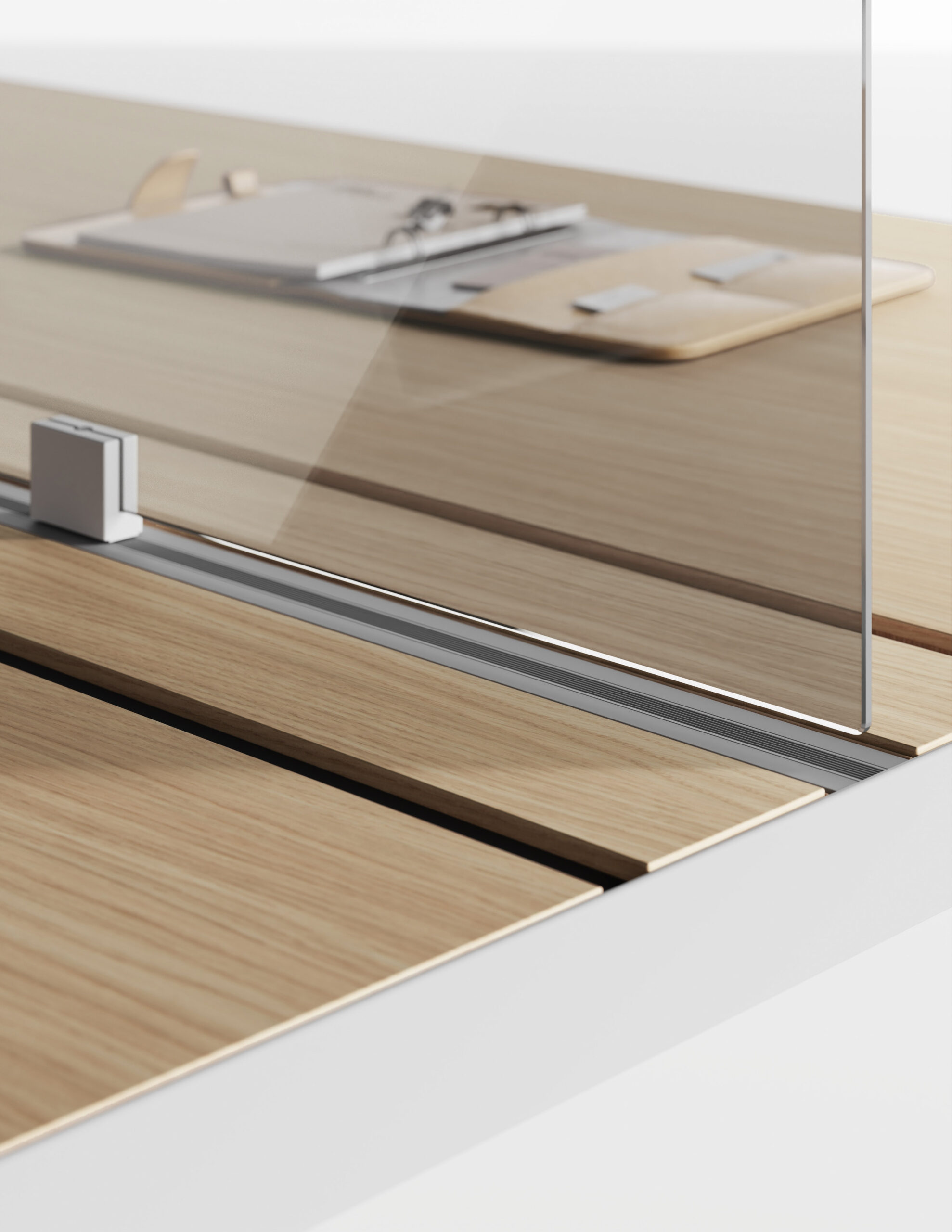La nécessité de séparer les postes de travail ou d’améliorer le niveau de confort acoustique entraine une nouvelle manière de proposer les différents panneaux de séparation, qui puissent être installés dans n’importe quelle collection sans limitations. L’utilisateur peut ainsi choisir le type d’écran qui correspond le mieux à ses besoins, simple cloison ou panneau acoustique, ajouter les accessoires préférés puis équiper son poste de travail de manière exclusive. Le concept d’applicabilité horizontale des panneaux de séparation, proposés en 5 versions différentes, se réalise grâce au système de fixation caché sous le plateau: un élément ultérieur d’amélioration esthétique et technique.