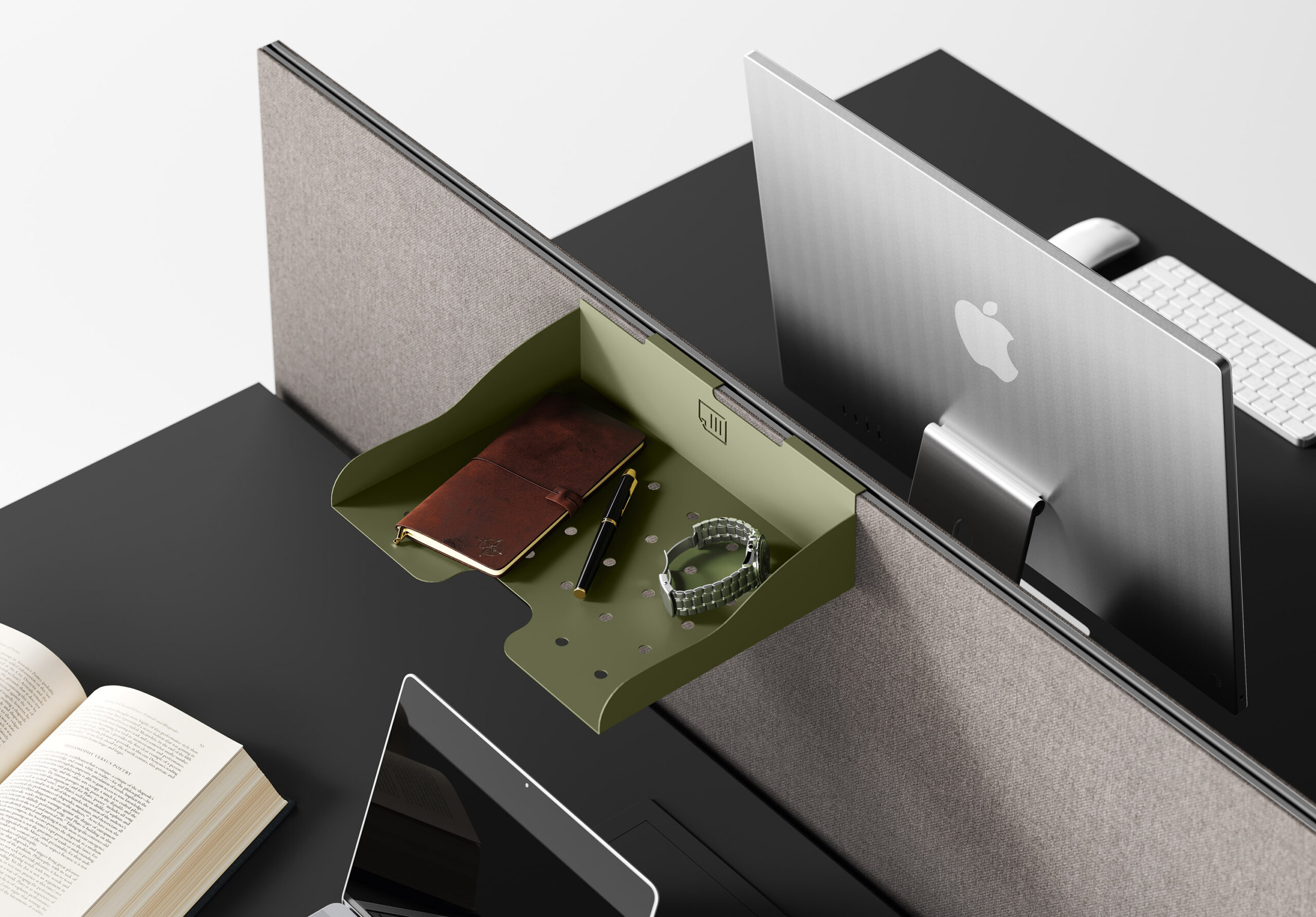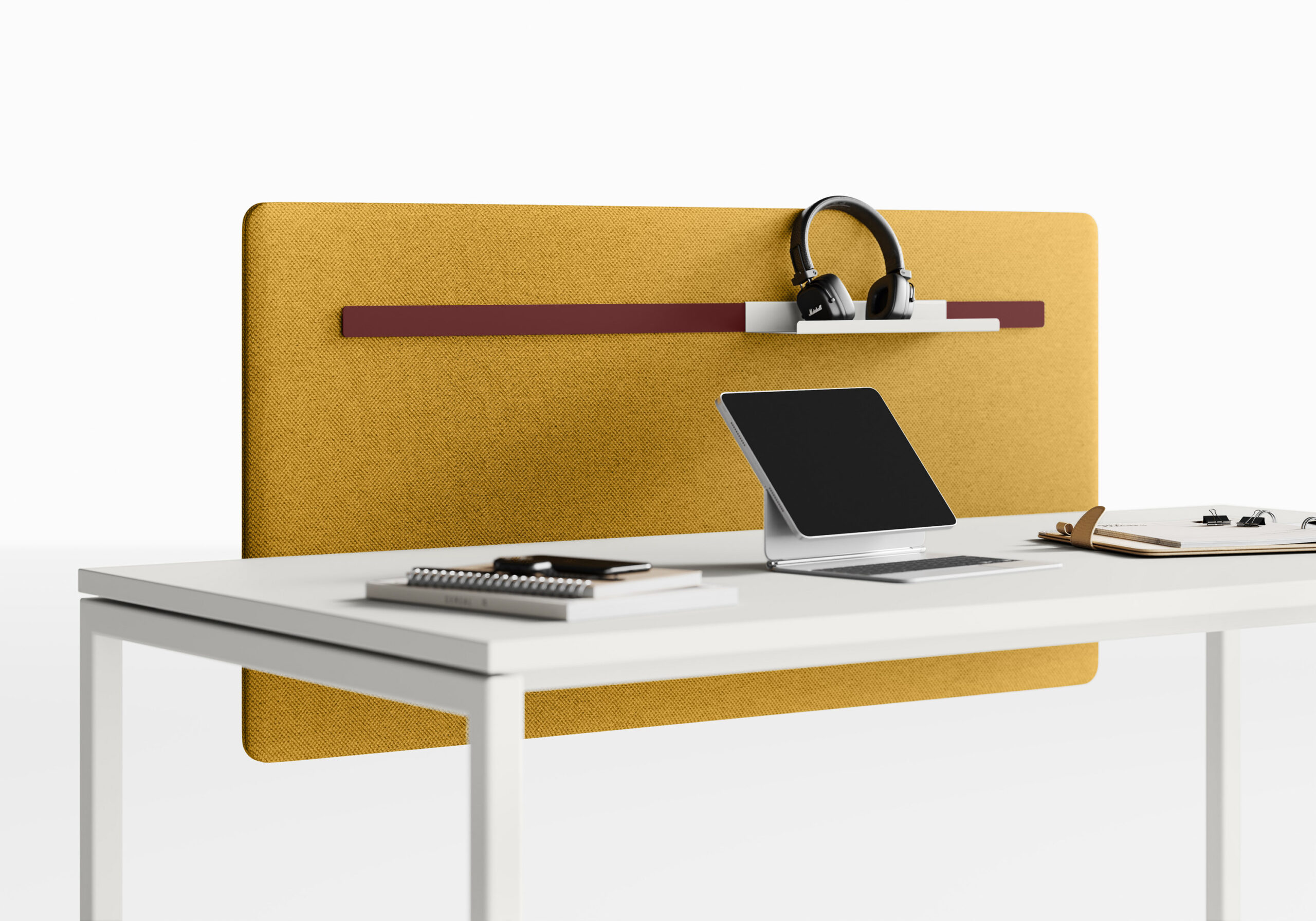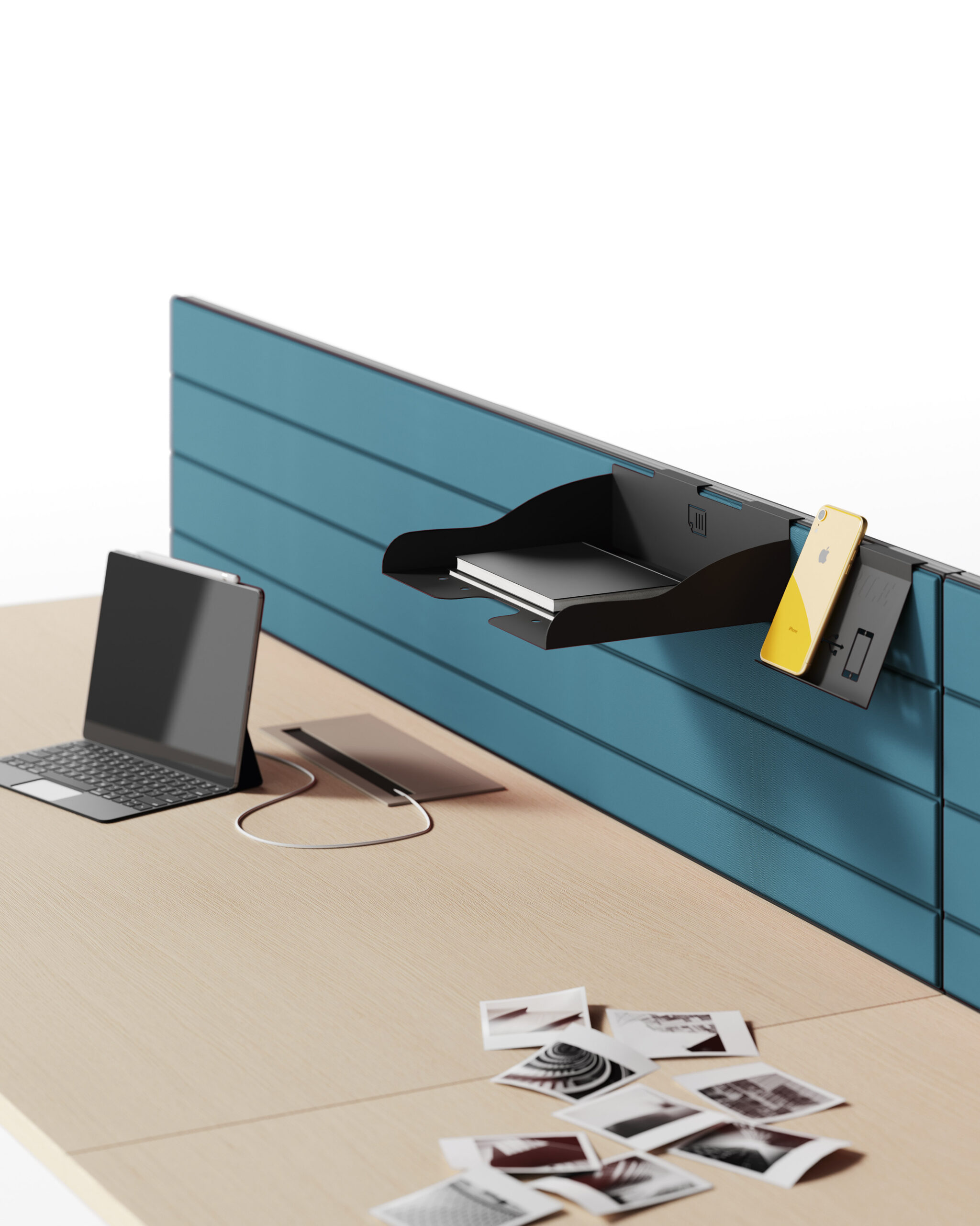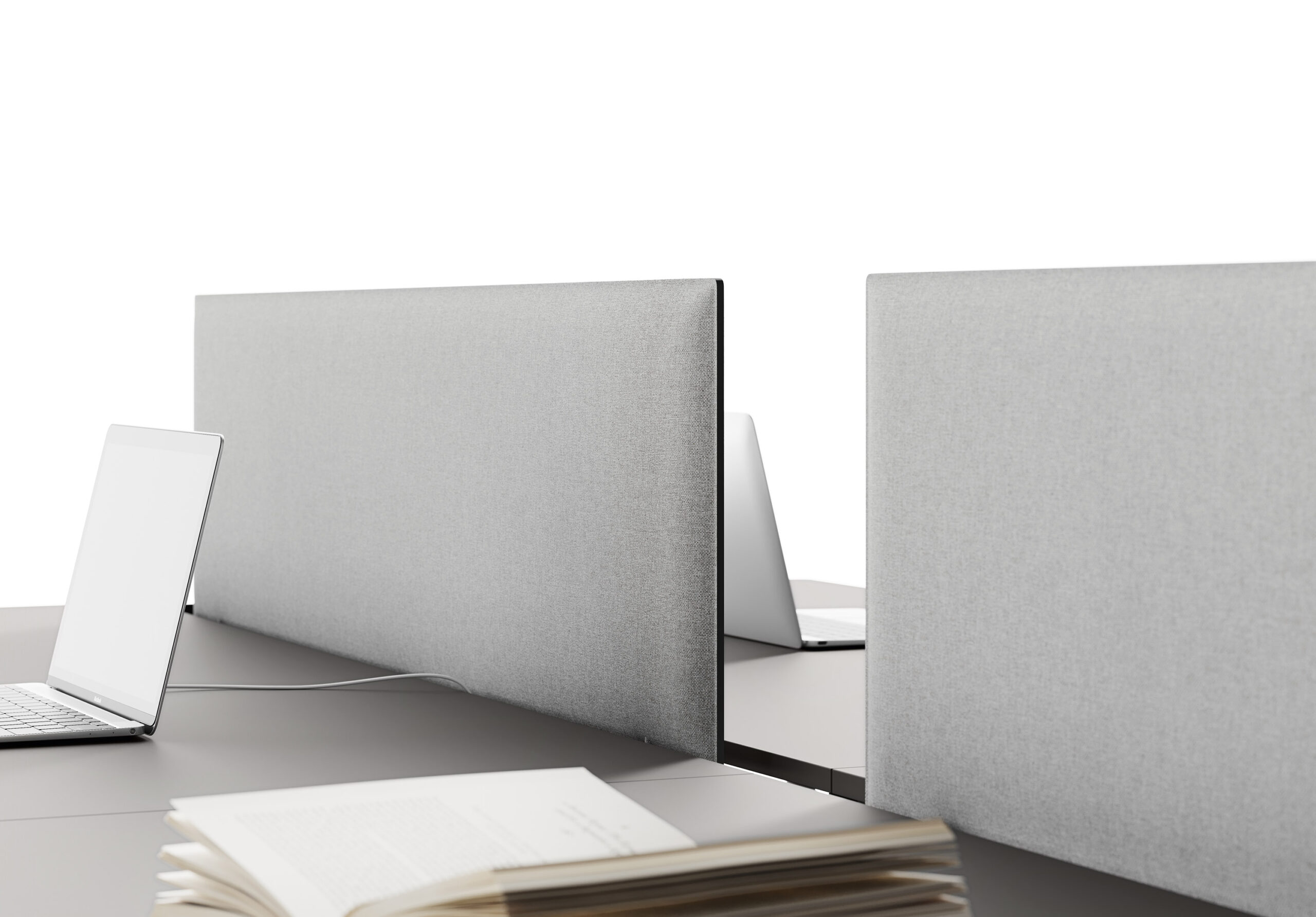 La nécessité de séparer les postes de travail ou d’améliorer le niveau de confort acoustique entraine une nouvelle manière de proposer les différents panneaux de séparation, qui puissent être installés dans n’importe quelle collection sans limitations. L’utilisateur peut ainsi choisir le type d’écran qui correspond le mieux à ses besoins, simple cloison ou panneau acoustique, ajouter les accessoires préférés puis équiper son poste de travail de manière exclusive. Le concept d’applicabilité horizontale des panneaux de séparation, proposés en 5 versions différentes, se réalise grâce au système de fixation caché sous le plateau: un élément ultérieur d’amélioration esthétique et technique.