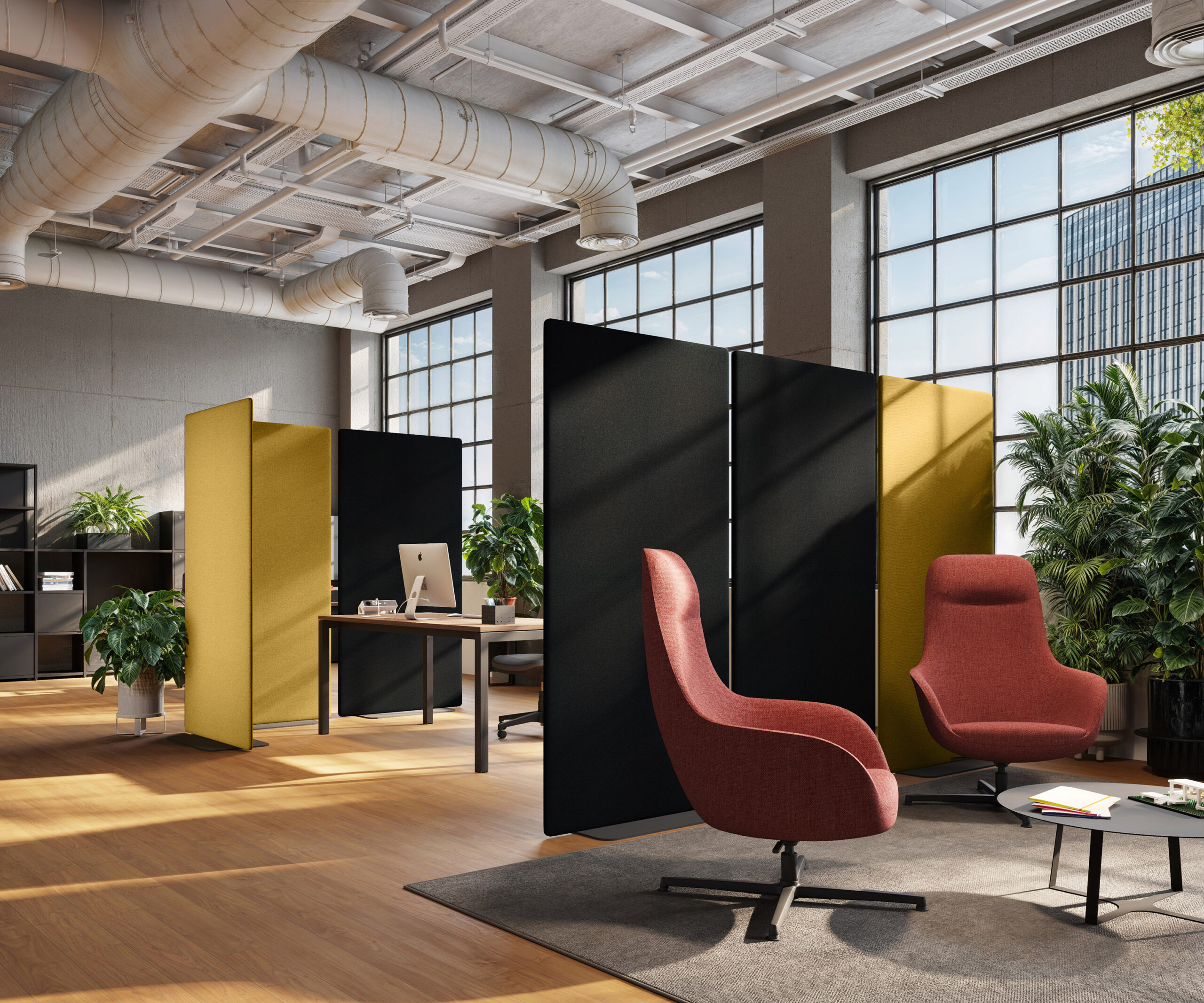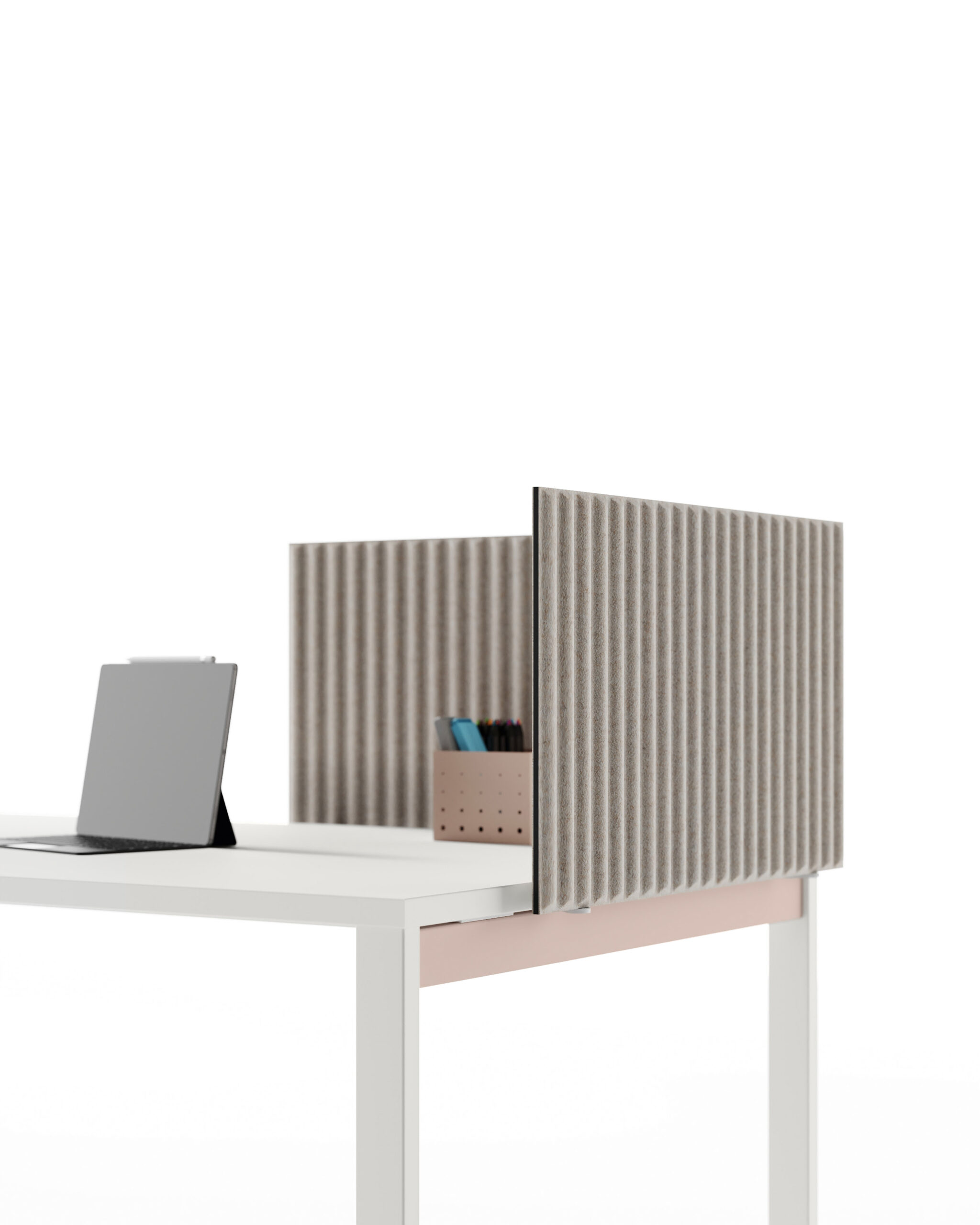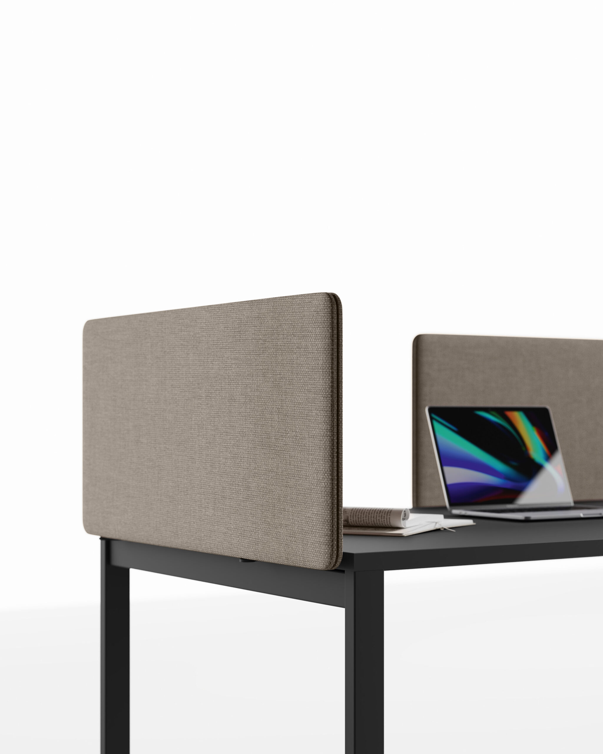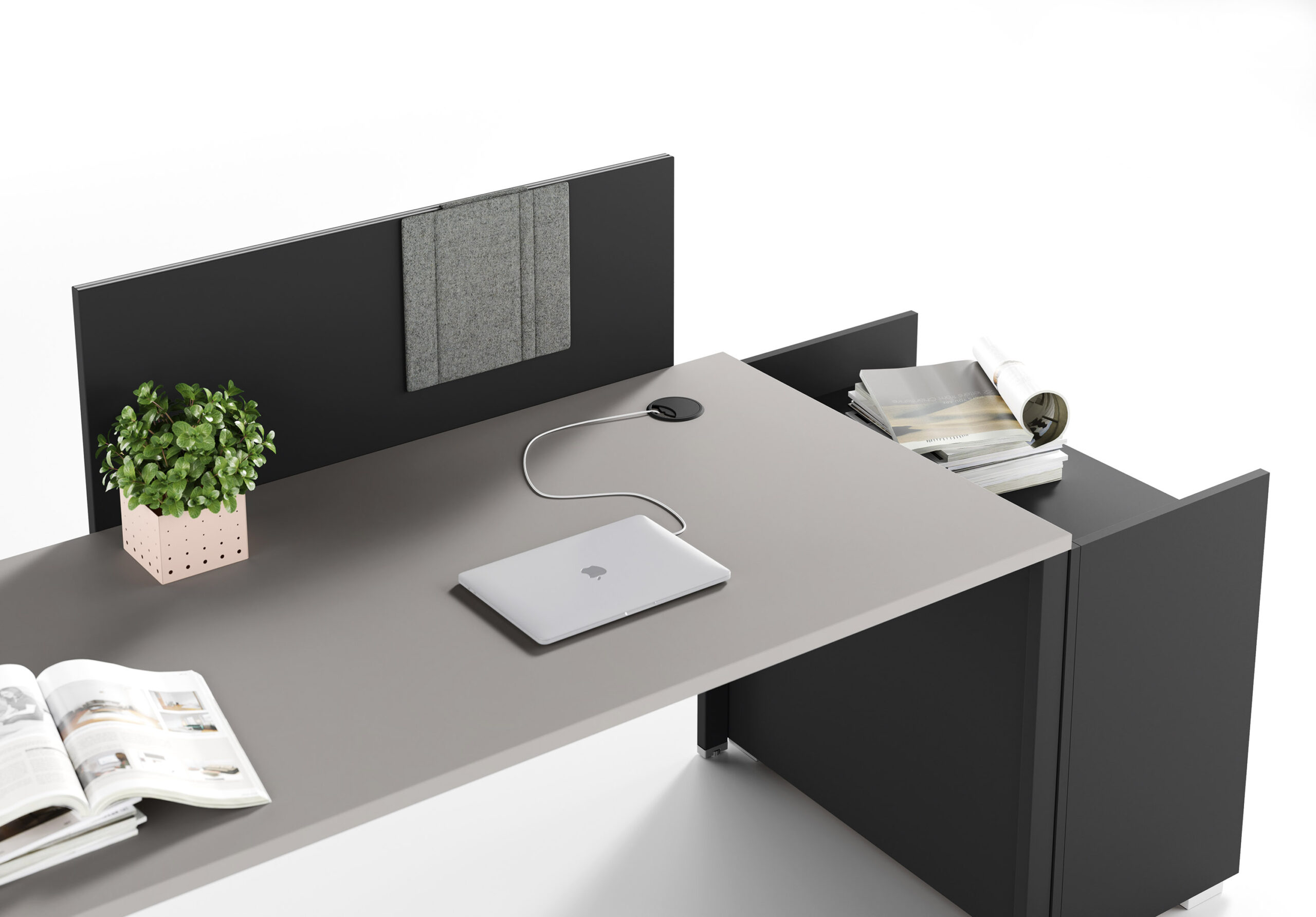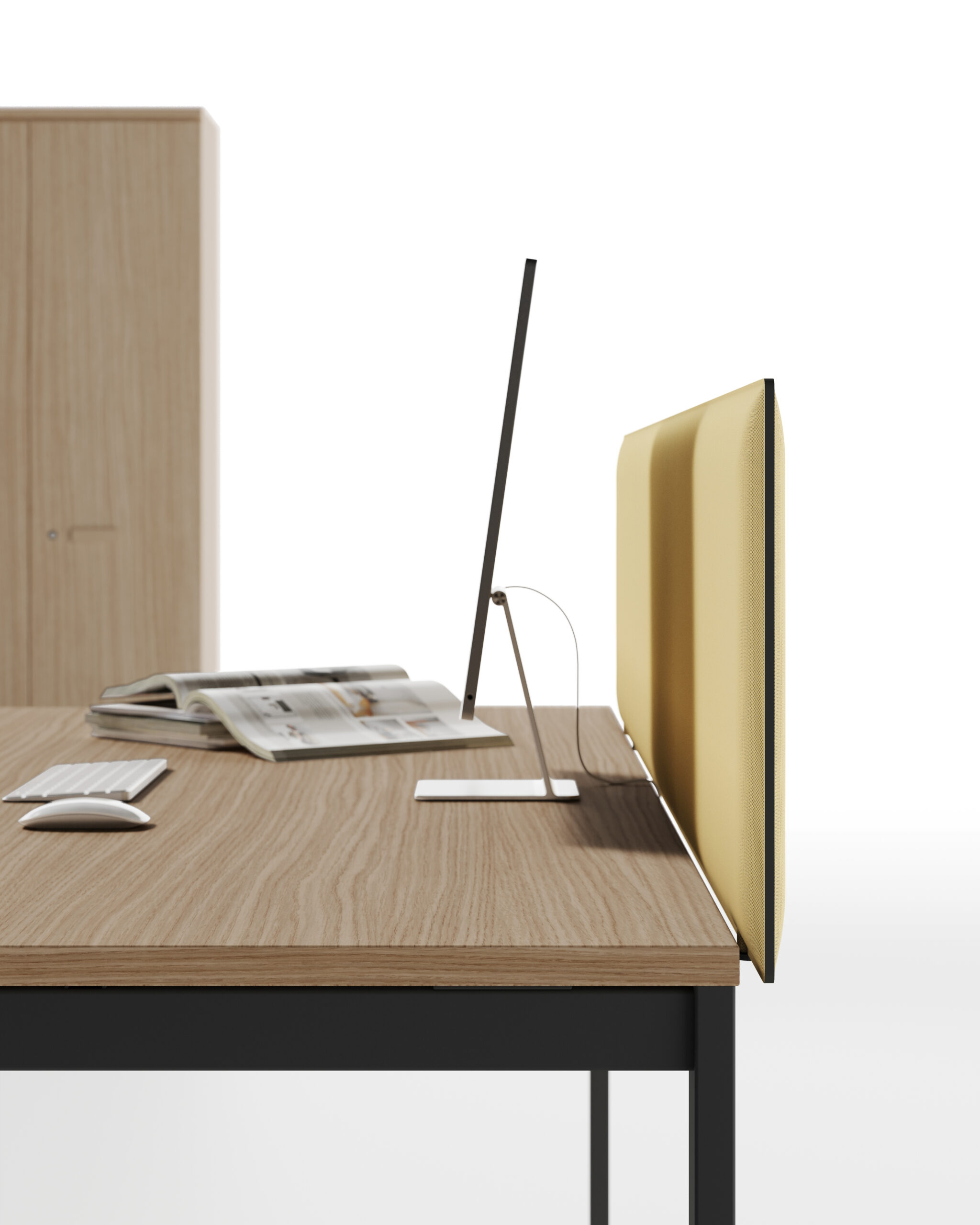 La nécessité de séparer les postes de travail ou d’améliorer le niveau de confort acoustique entraine une nouvelle manière de proposer les différents panneaux de séparation, qui puissent être installés dans n’importe quelle collection sans limitations. L’utilisateur peut ainsi choisir le type d’écran qui correspond le mieux à ses besoins, simple cloison ou panneau acoustique, ajouter les accessoires préférés puis équiper son poste de travail de manière exclusive. Le concept d’applicabilité horizontale des panneaux de séparation, proposés en 5 versions différentes, se réalise grâce au système de fixation caché sous le plateau: un élément ultérieur d’amélioration esthétique et technique.