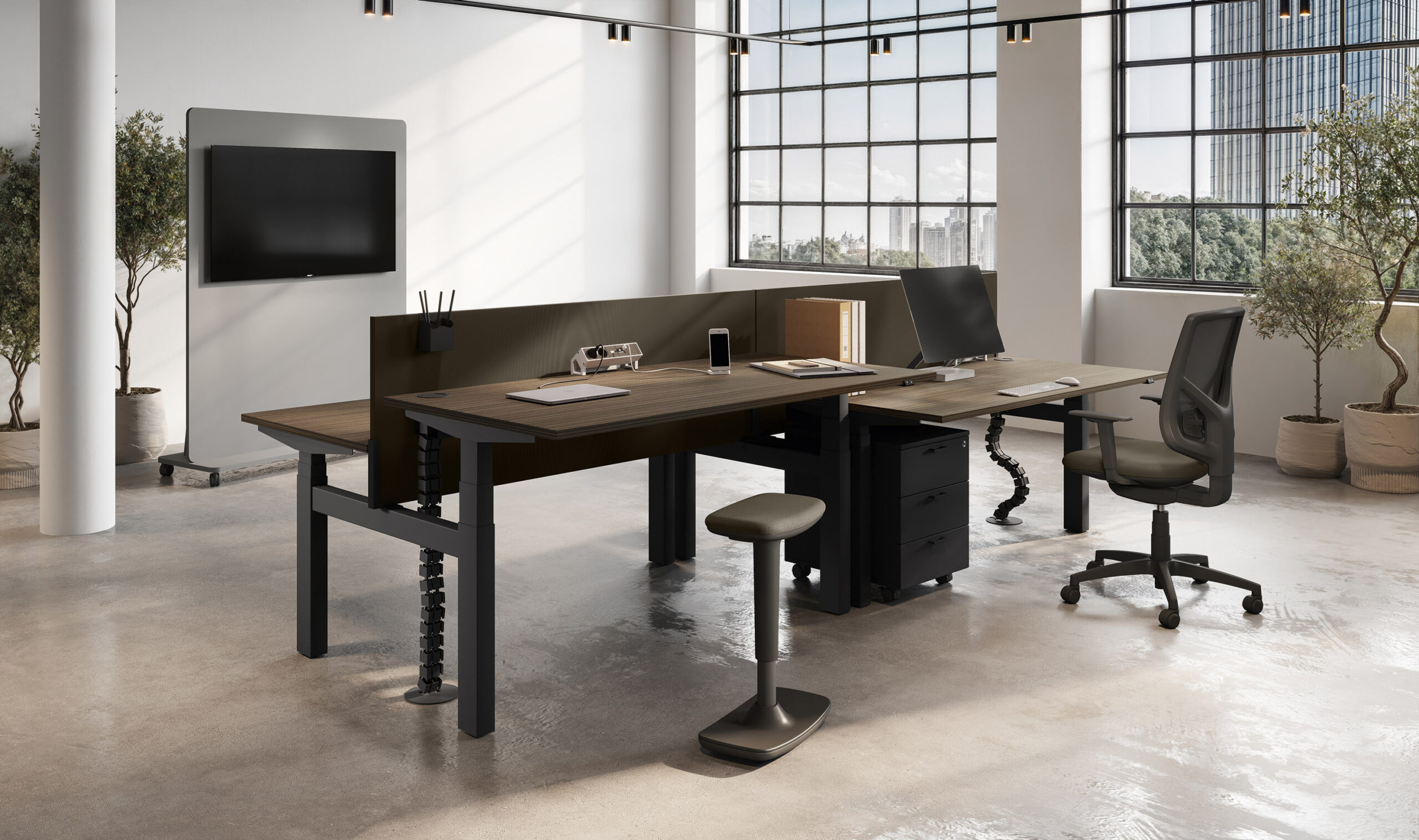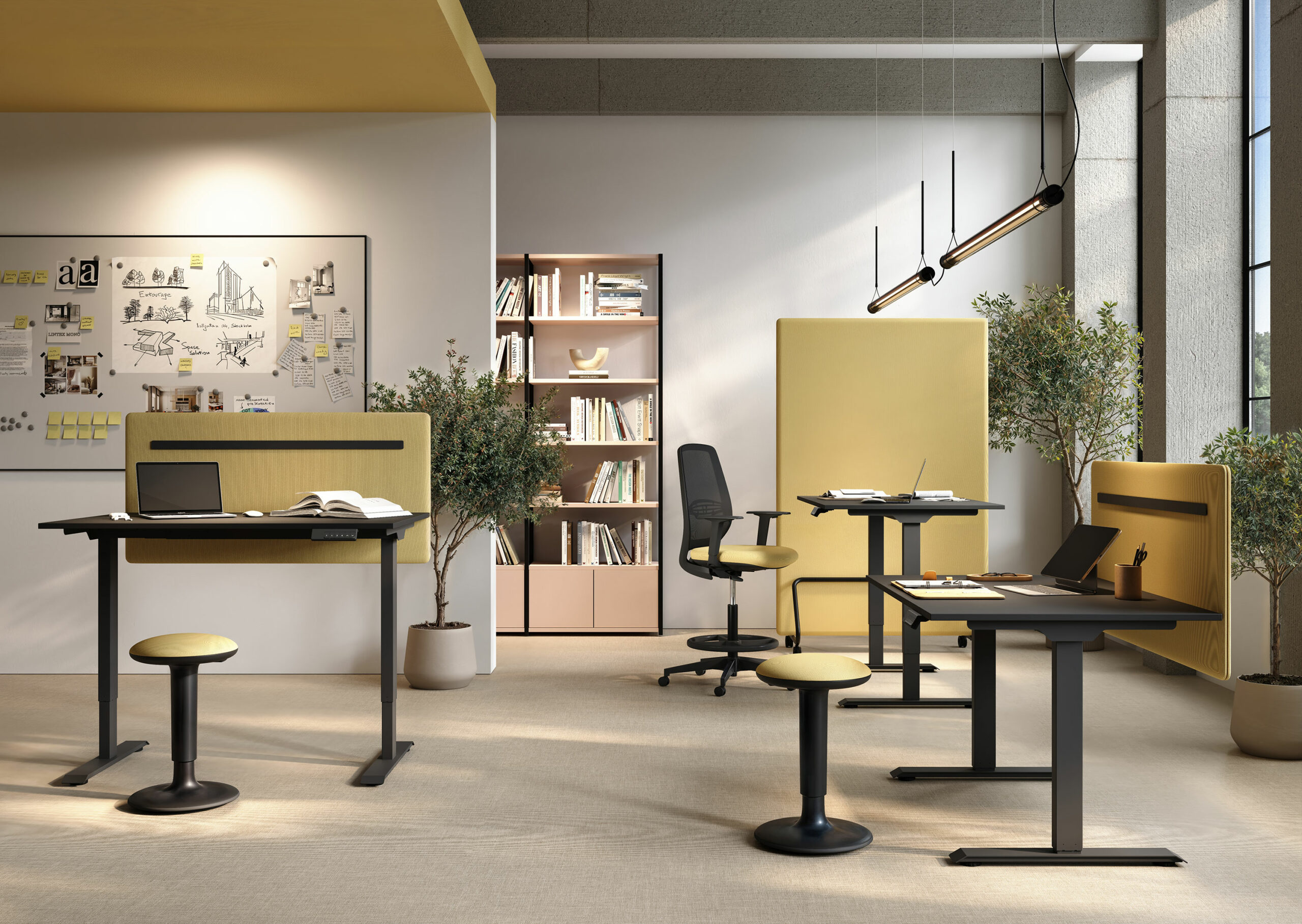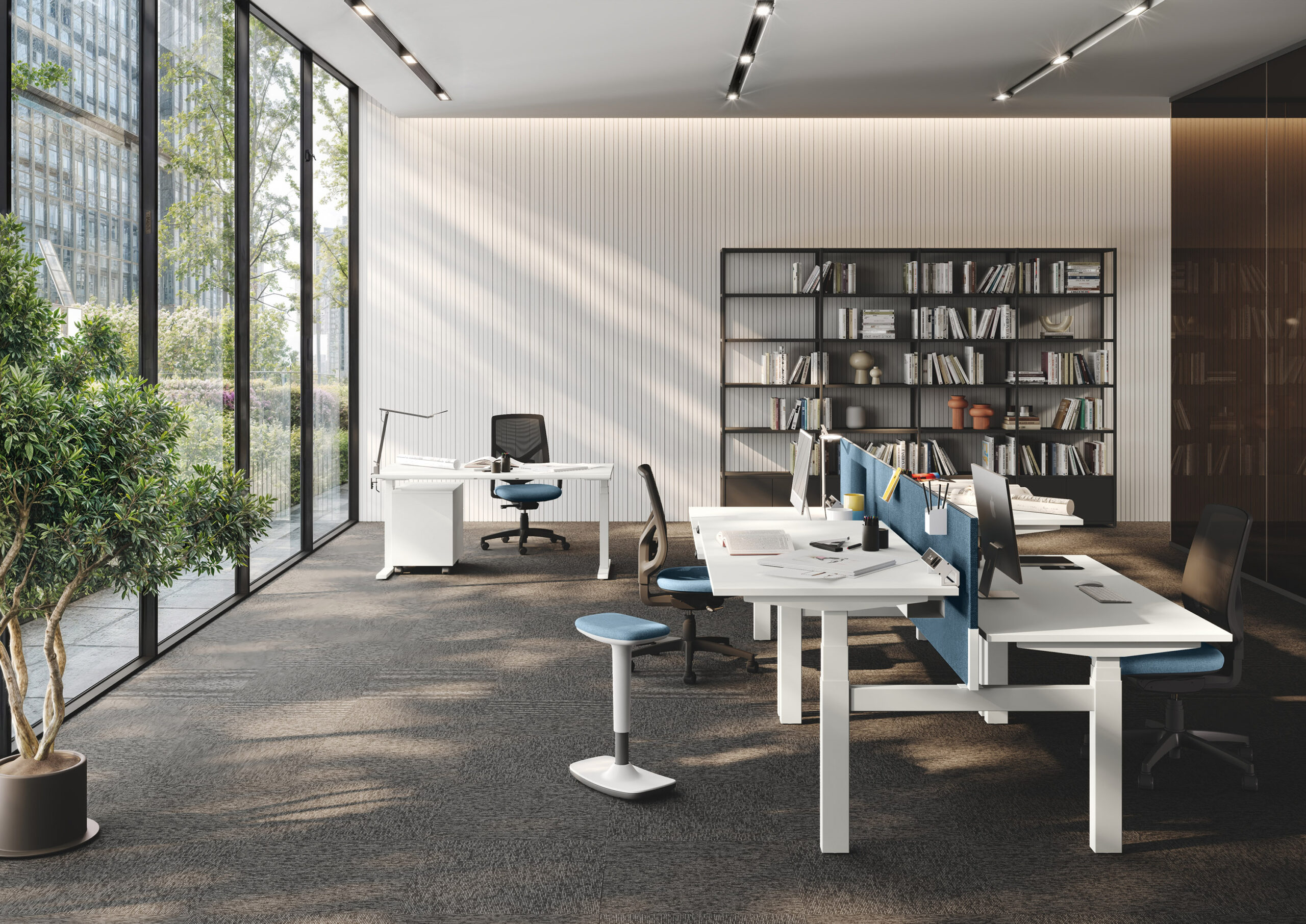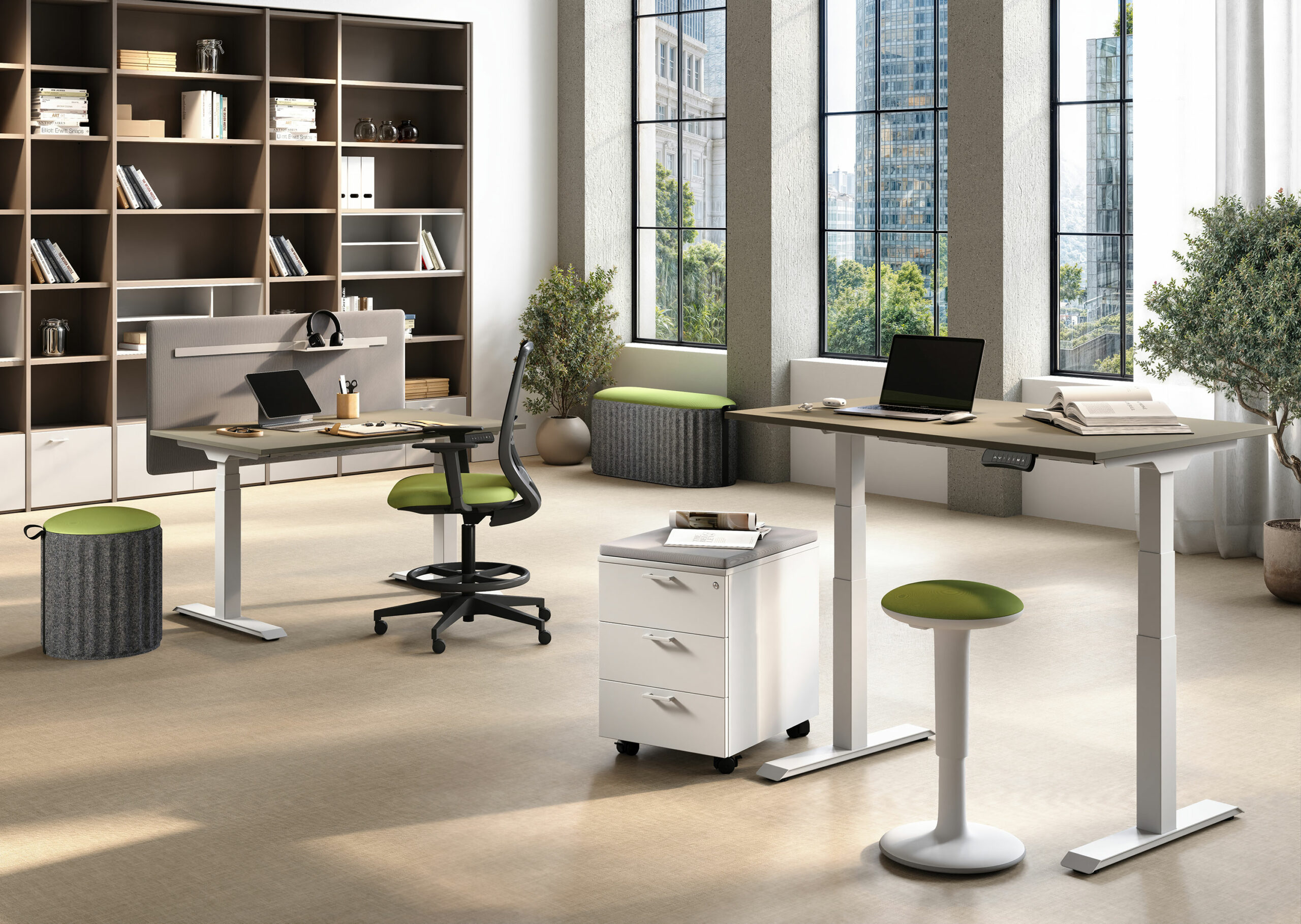 Les postes avec plateau à hauteur réglable assurent une position ergonomique et fonctionnelle avec la possibilité de changer sa posture pendant la journée et de travailler debout ou assis. La version simple, compacte et versatile, satisfait les exigences d’une gestion des espaces à haute variabilité.