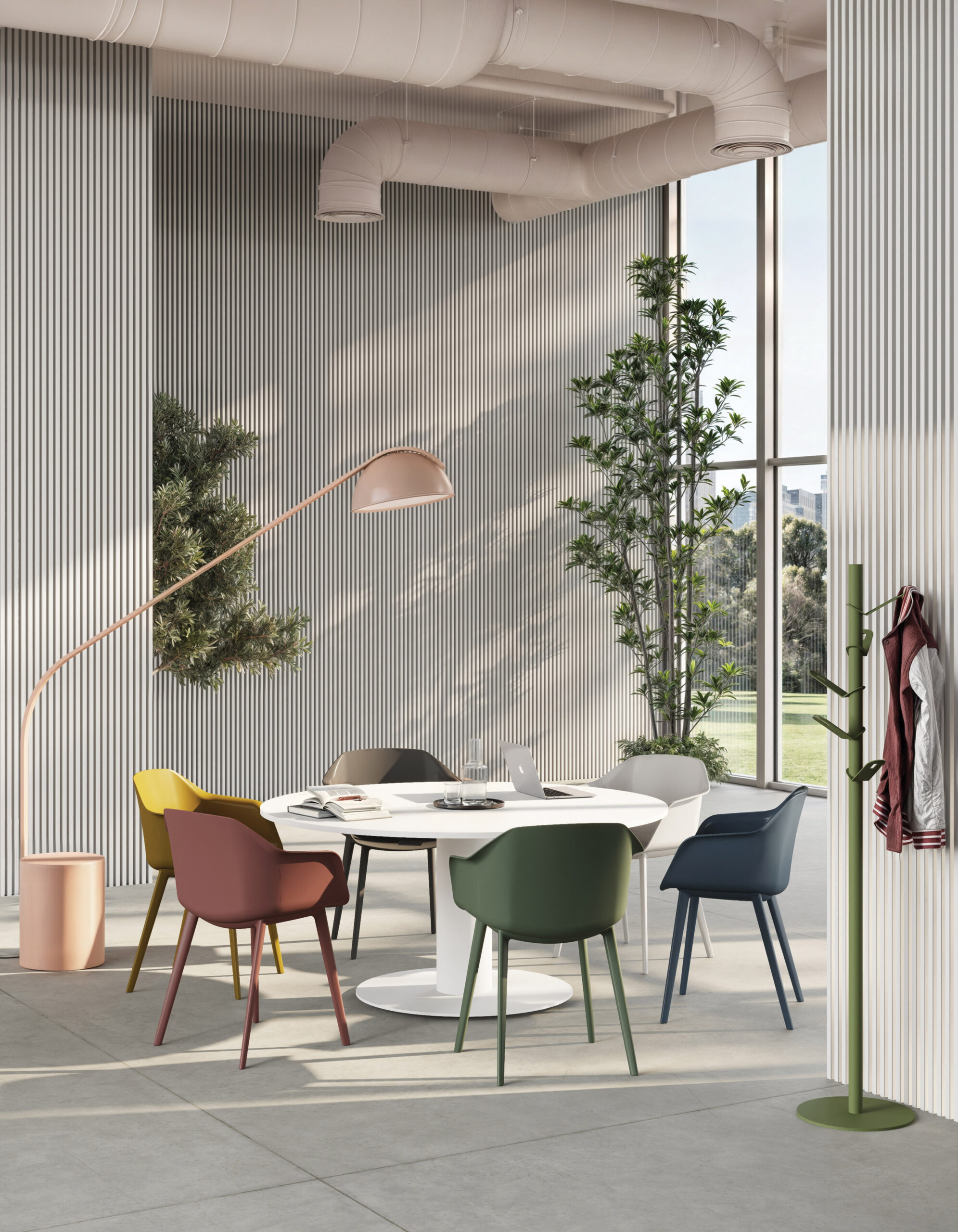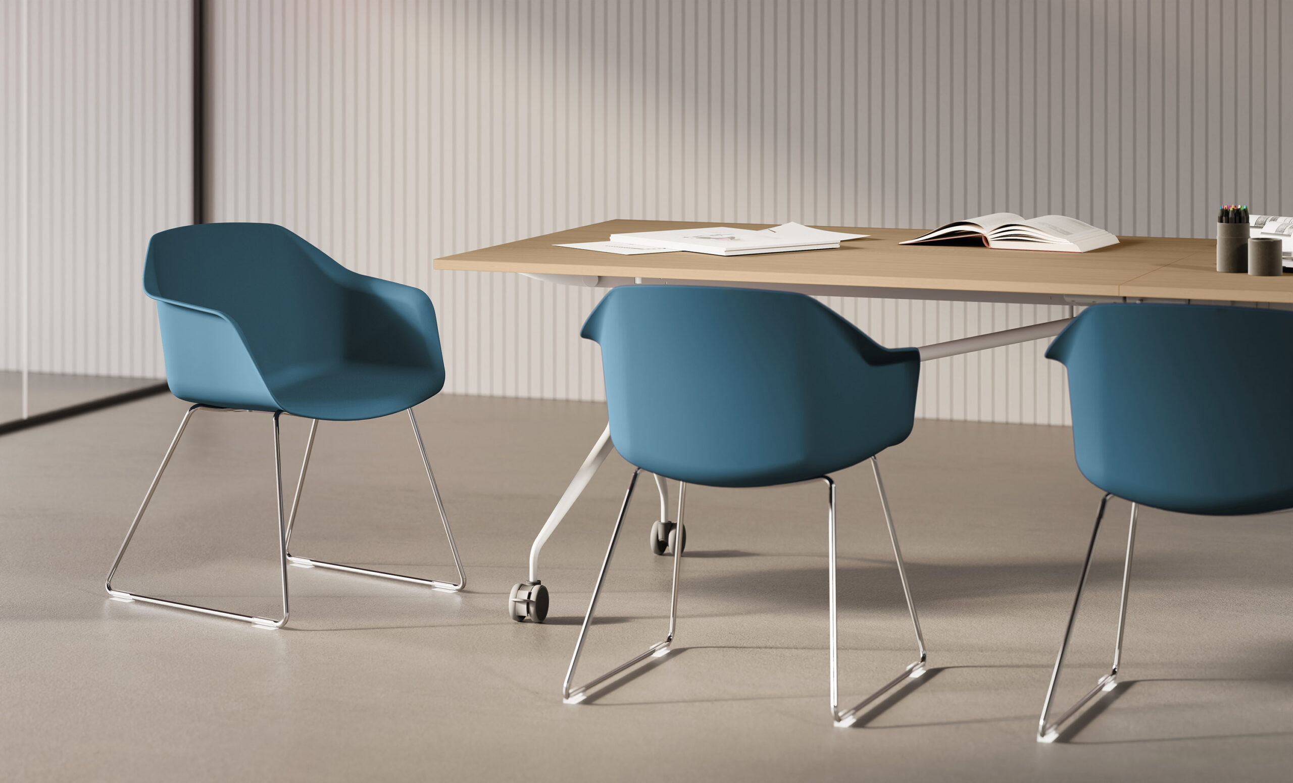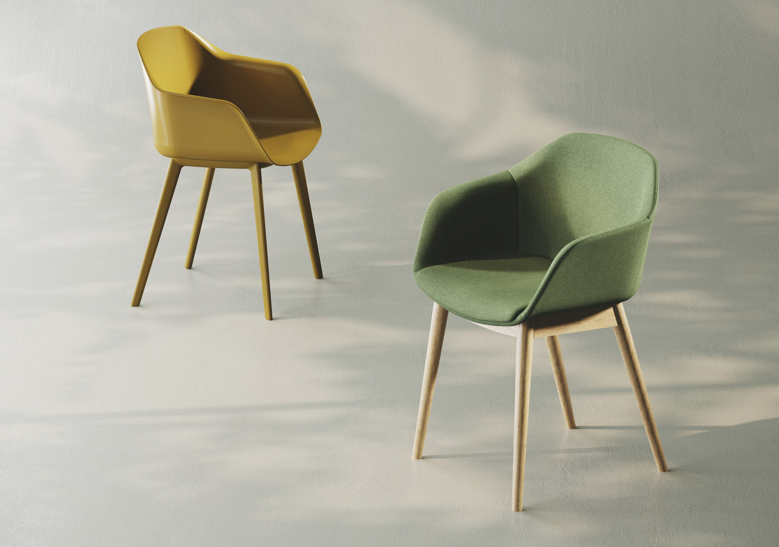 Poltroncina monoscocca in polimero stampata ad iniezione con gambe in tinta. Disponibile imbottita con gomma schiumata a freddo con telaio 4 gambe in legno faggio naturale.