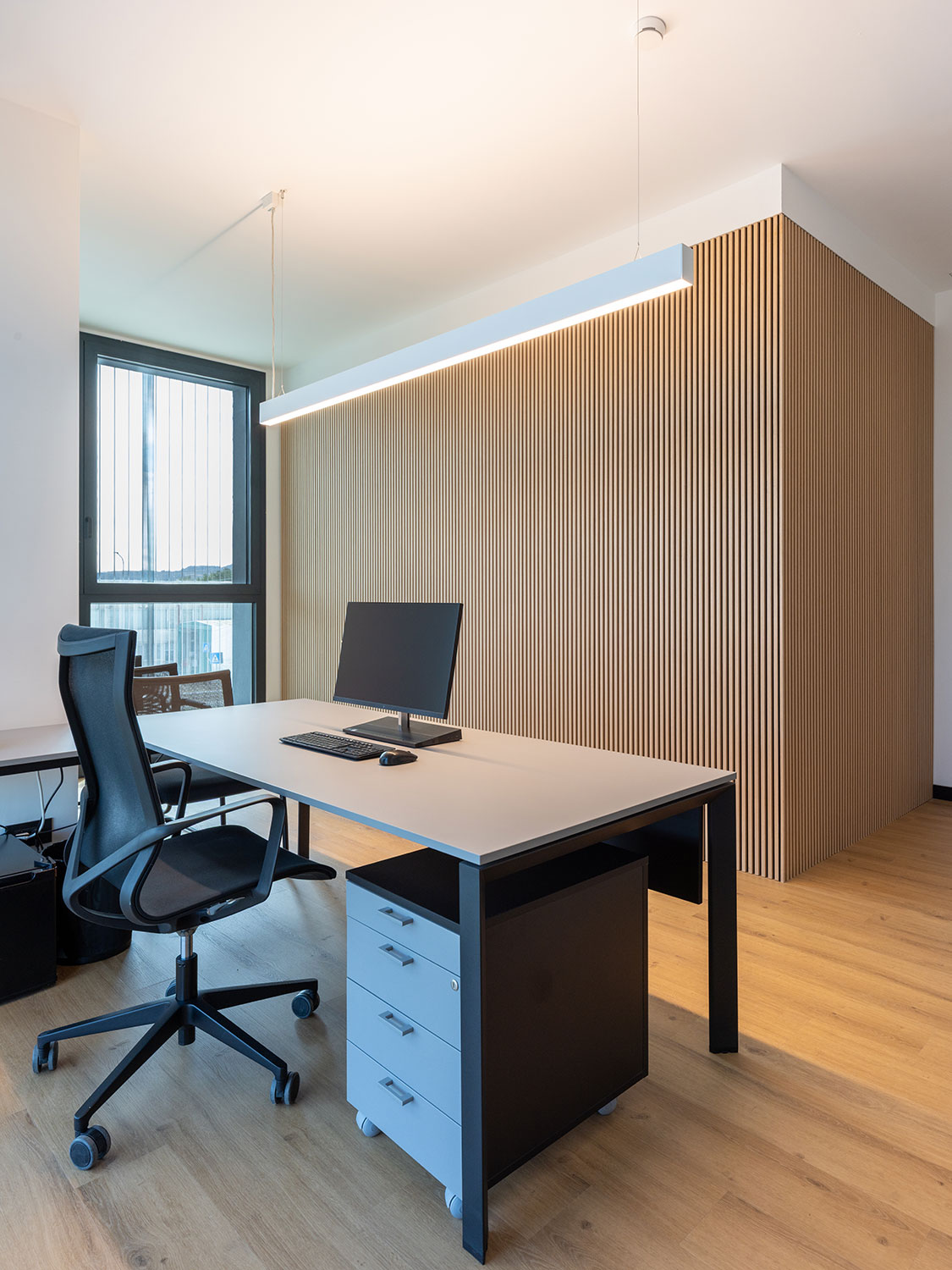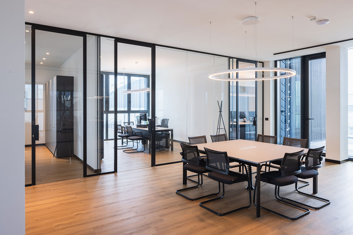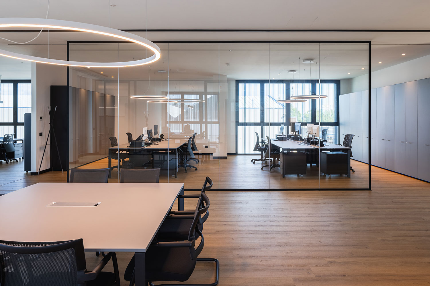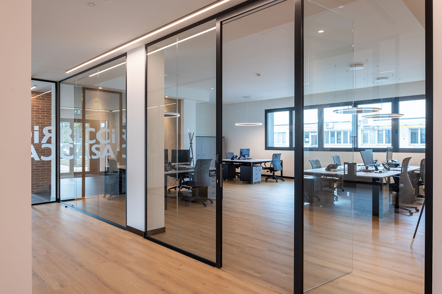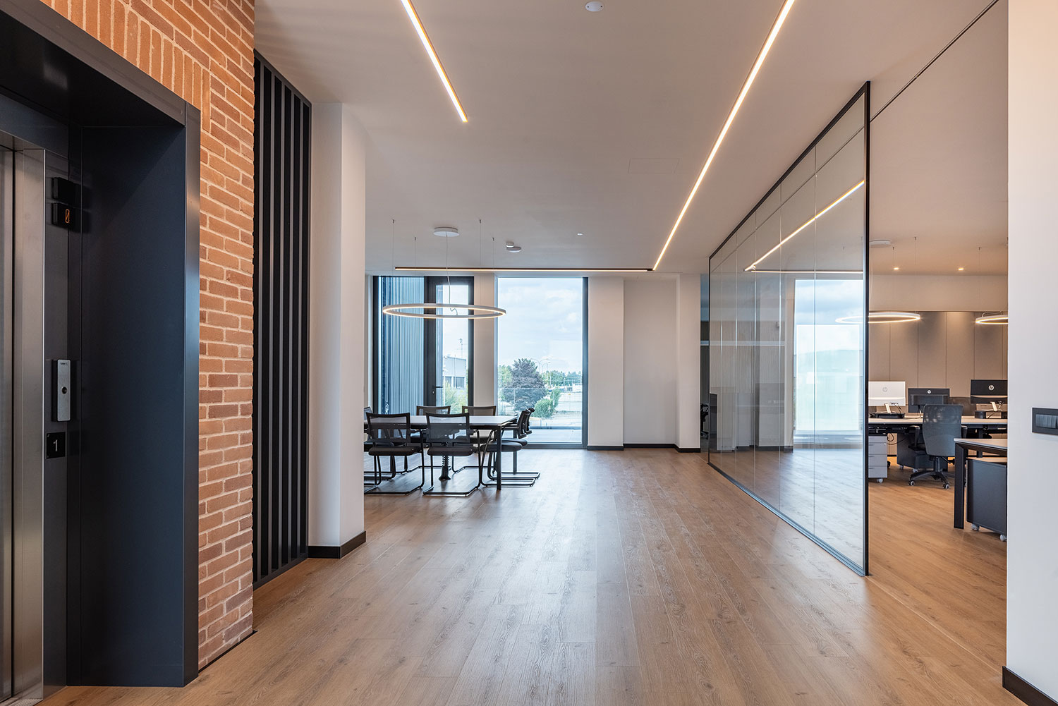 Le ampie superfici vetrate, la luce naturale e le finiture calde creano un ambiente dinamico e ispirante, dove il lavoro diventa esperienza condivisa e armoniosa.