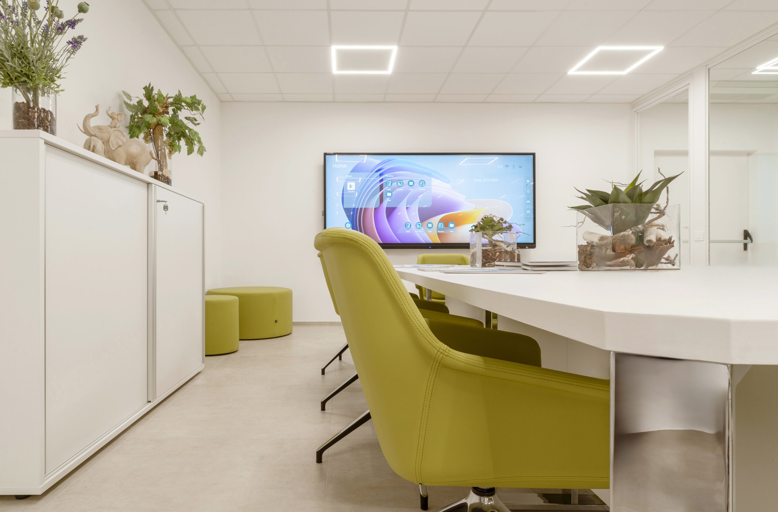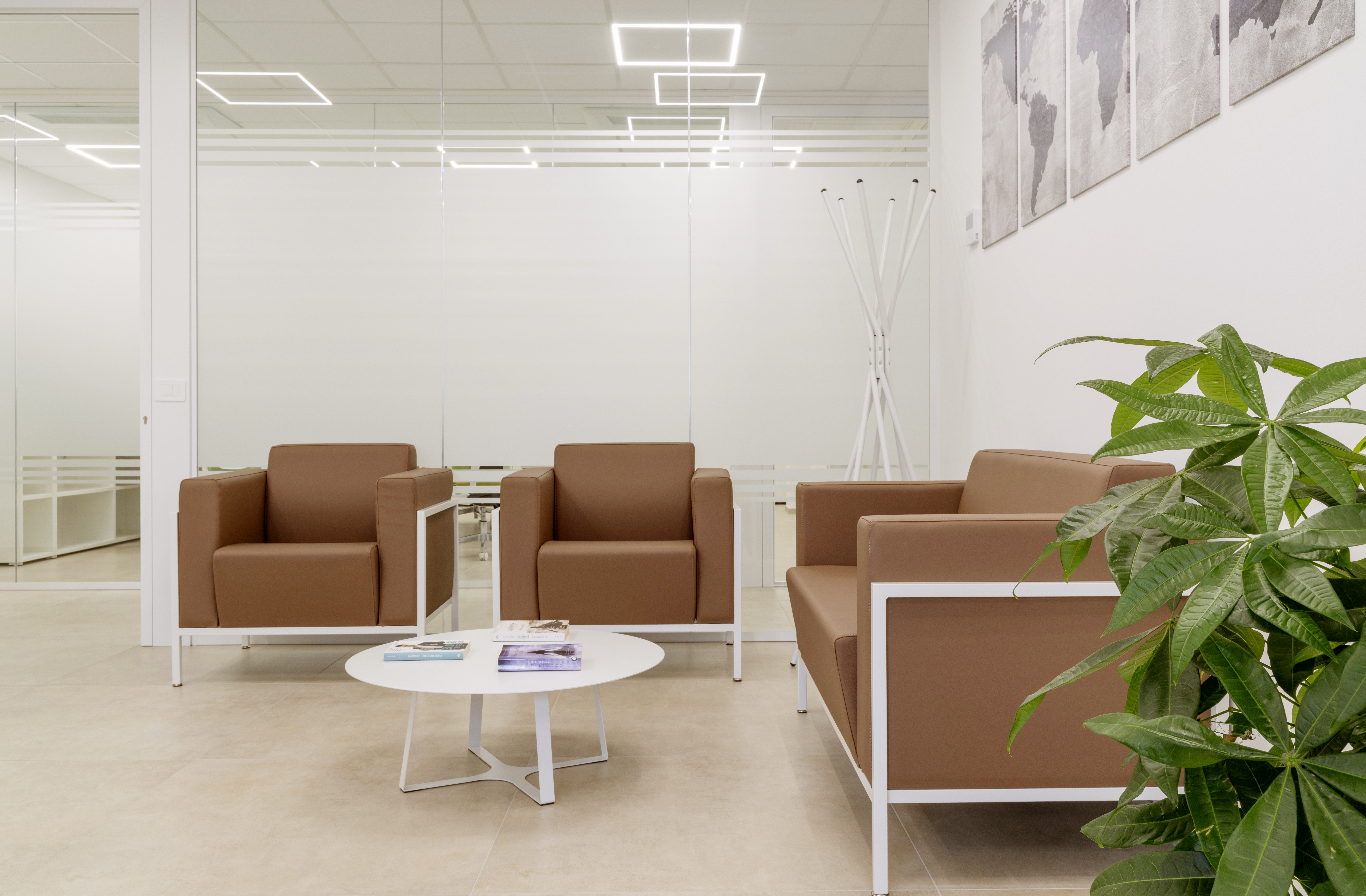 La Parete Mood e i sistemi IULIO, OXI, WORKLAND e TRUKA organizzano gli spazi con equilibrio e razionalità. Le sedute JERA Sofa , CAST e JERA Meeting accolgono momenti di incontro, collaborazione e condivisione. I CONTENITORI UNIVERSALI, SHARE e CUBO completano il progetto, garantendo una gestione efficiente e coerente degli ambienti.